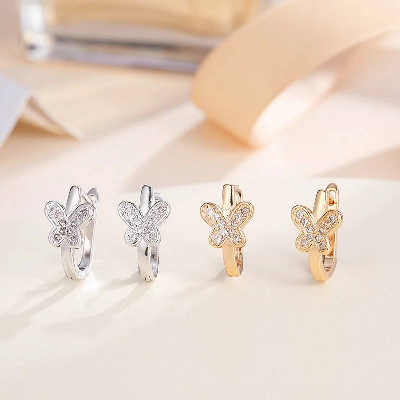 Новая классическая бабочка золотосеребро Цвет кубический цирконий, серьги-гвоздики для женщин ювелирные изделия Свадебная вечеринка простые подарки высокого качества