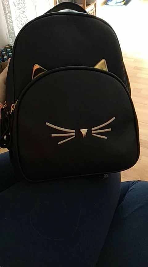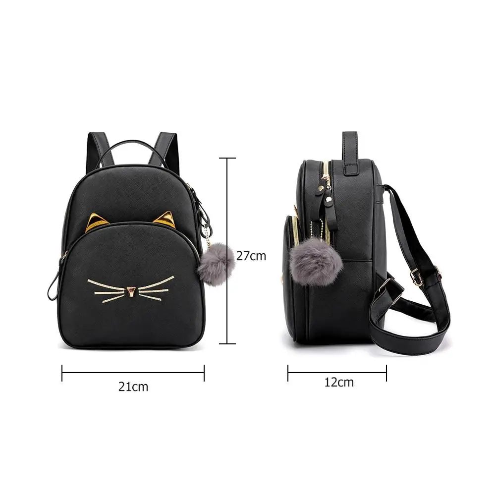 Рюкзак женский, из мягкой искусственной кожи, Квадратный, с мультяшным котом и несколькими карманами