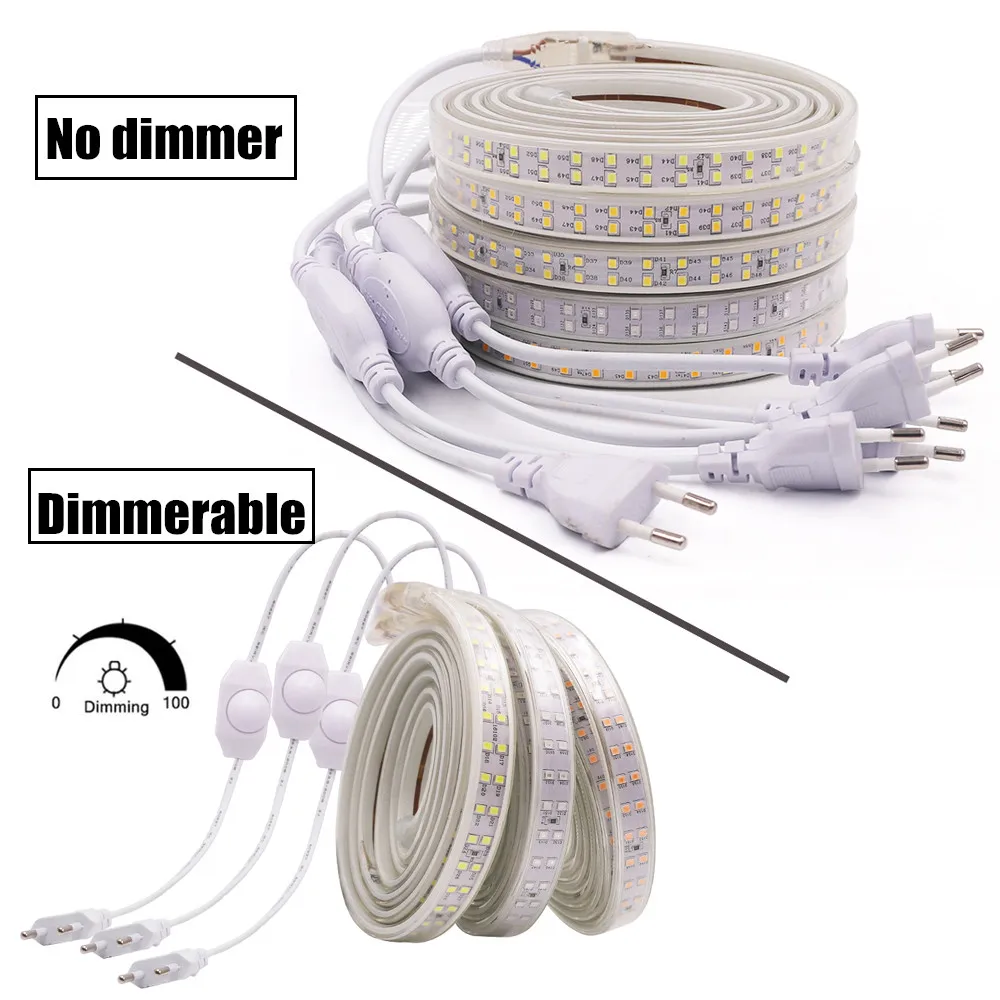Гибкая Водонепроницаемая светодиодная лента 220, 2835 в, с регулировкой яркости IP67