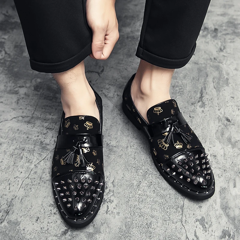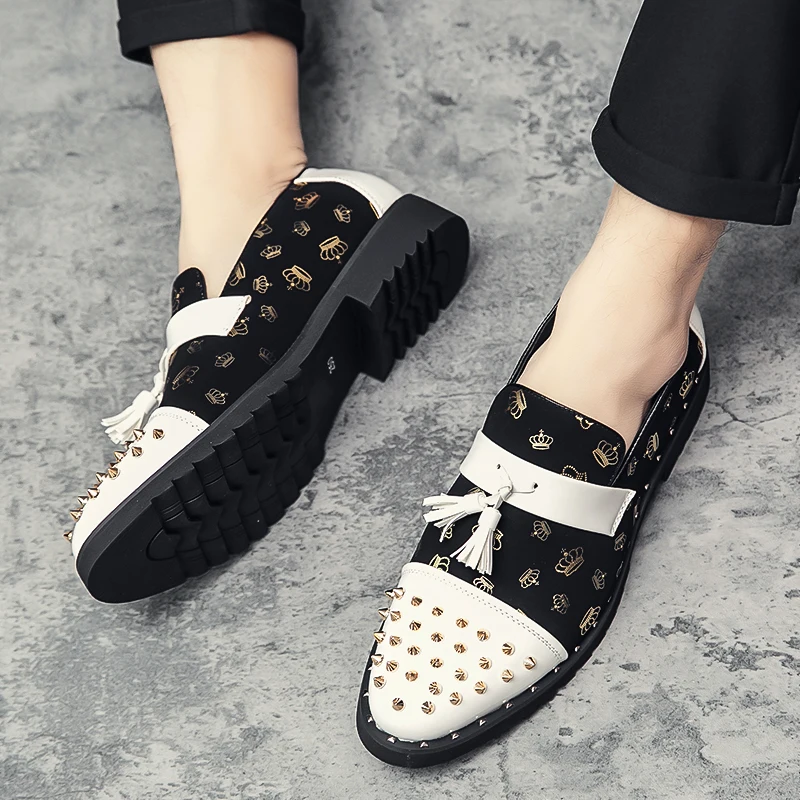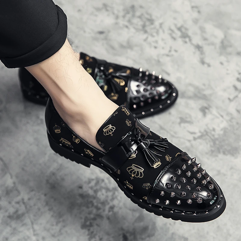 Туфли мужские кожаные с заклепками, классические, повседневные, для вождения, плоская подошва, Классическая Свадебная обувь, 38-48