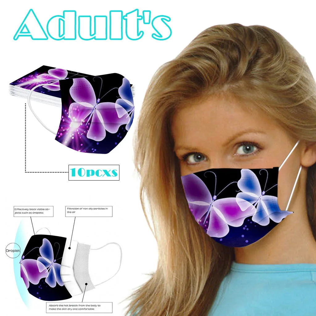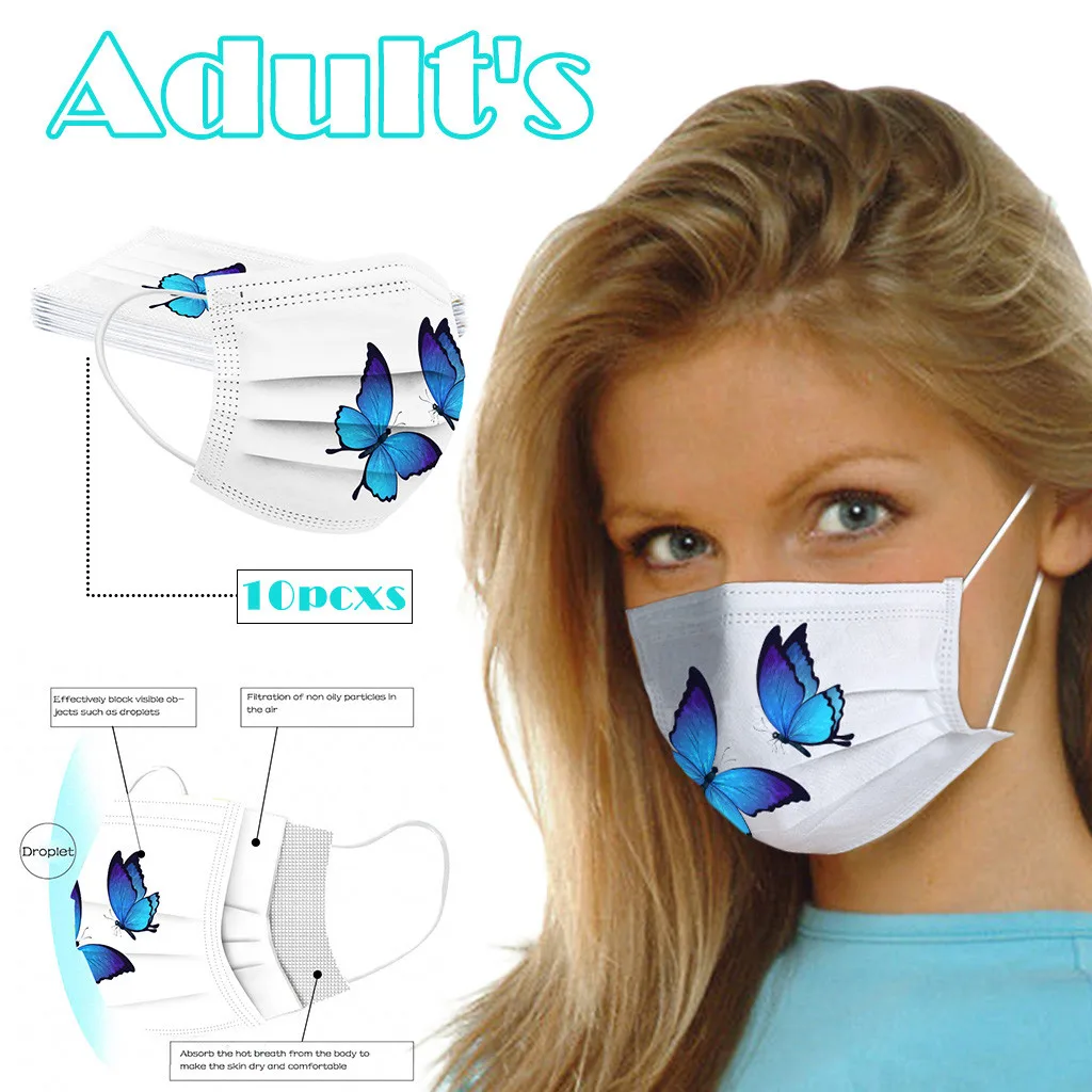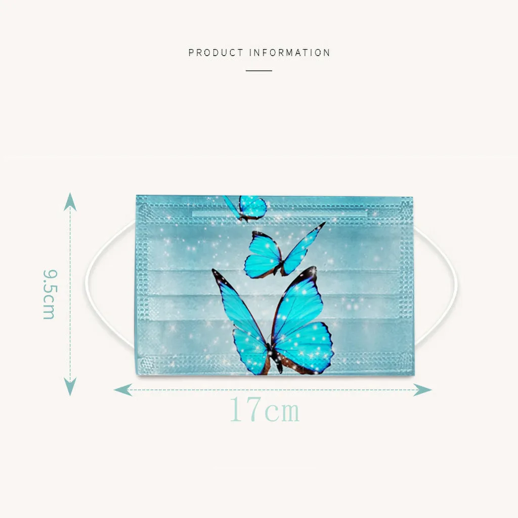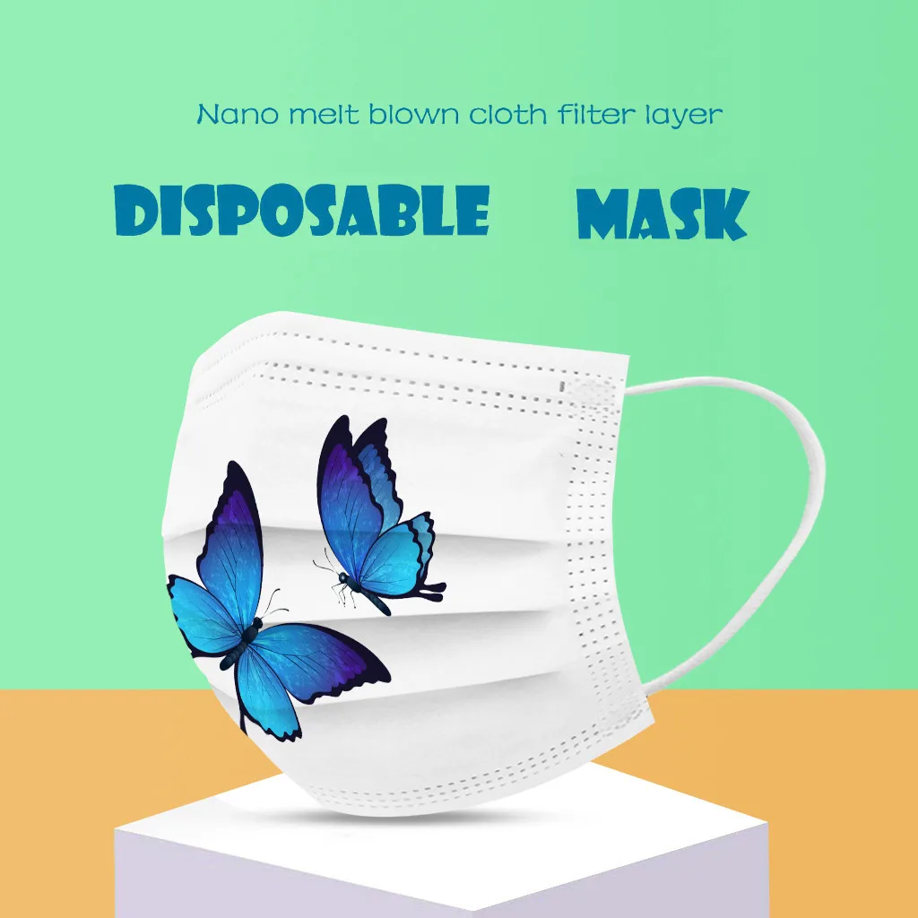 Маска одноразовая трехслойная дышащая для лица с принтом бабочки, 50 шт.