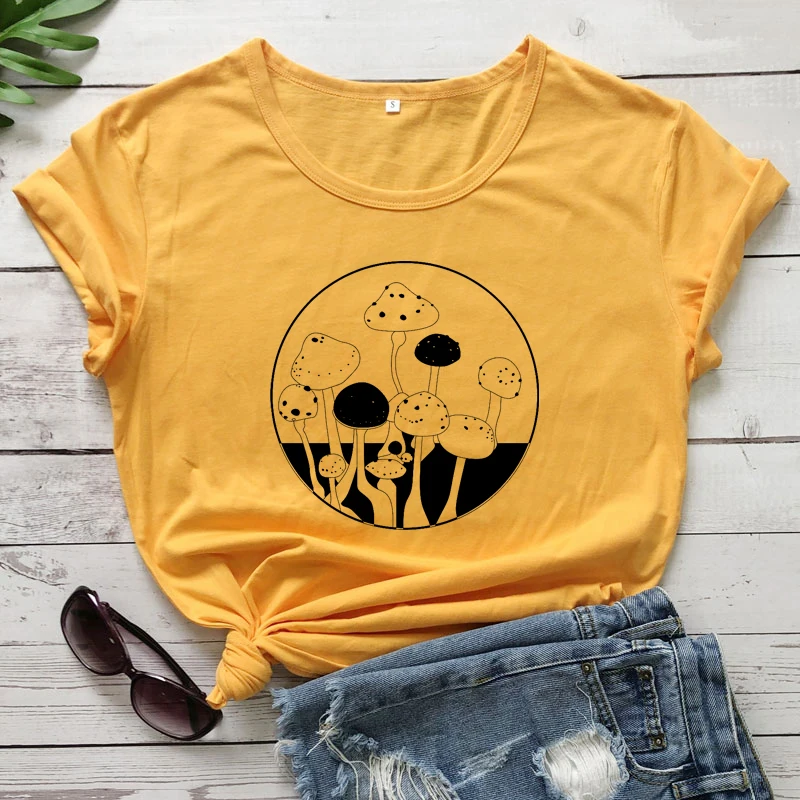 Футболка женская летняя с коротким рукавом и принтом гриба и лягушки
