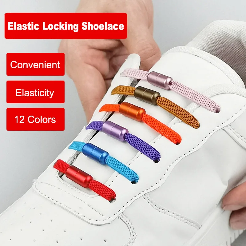 Плоские эластичные шнурки с фиксацией, креативные шнурки для кроссовок, унисекс, без завязывания, 1 пара