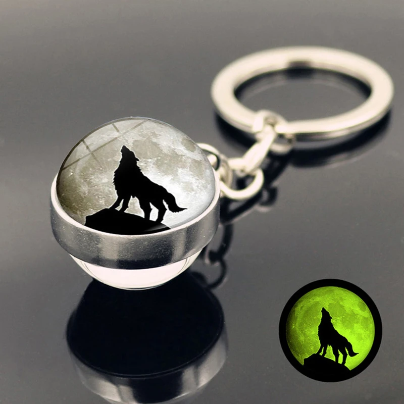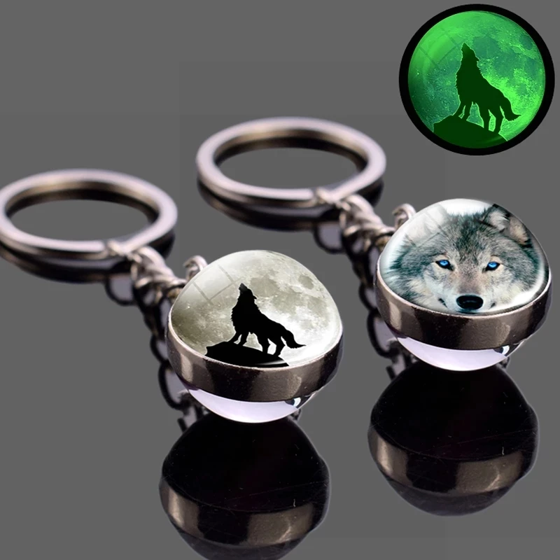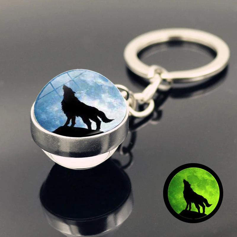 Светящийся Волк и брелок луна стеклянный шар подвеска светящиеся Брелки держатель волк голова ювелирные изделия животное брелок