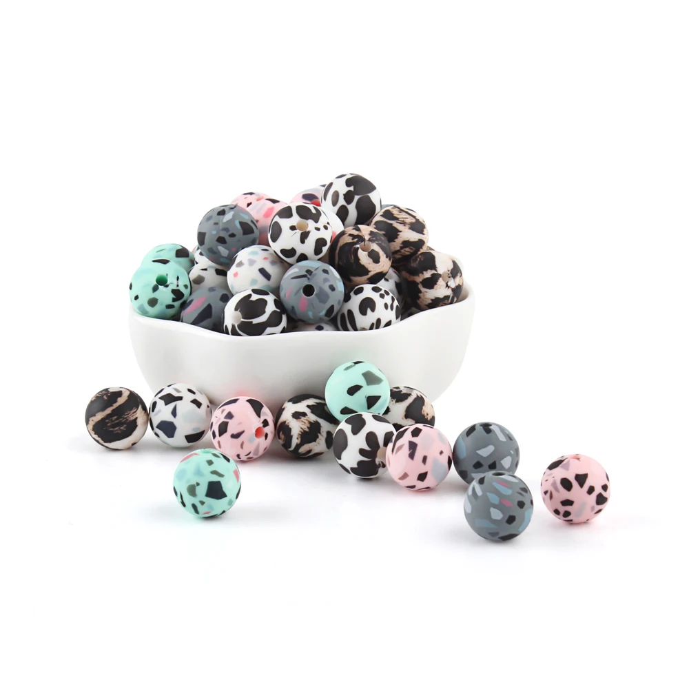 12 мм, силиконовая искусственная кожа, леопардовый рисунок, 10 шт., не содержит Бисфенол А, Детский круглый шар для прорезывания зубов, жемчуг, силиконовый зажим сделай сам для соски, Прорезыватель для зубов