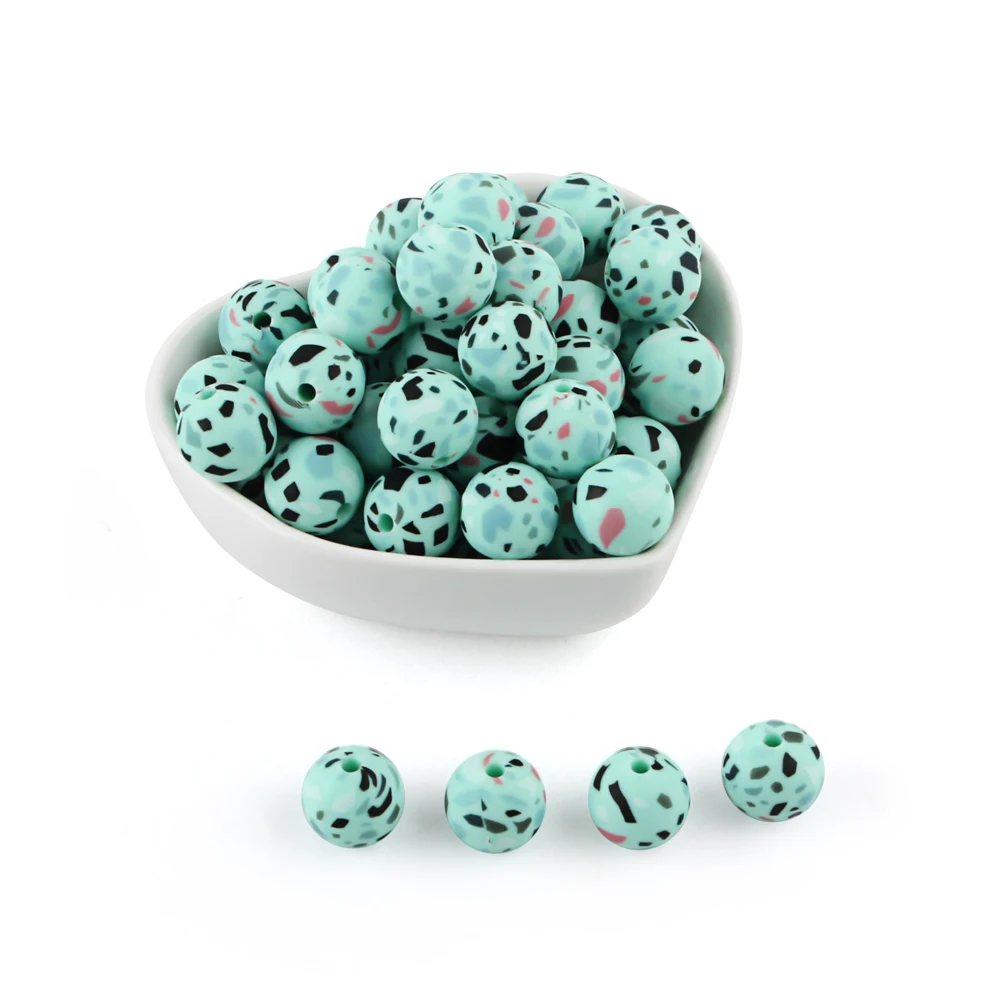 12 мм силиконовые детские бусы с леопардовым принтом, 10 шт., BPA бесплатно, Детские Прорезыватели, круглый шар, жемчуг, сделай сам, Силиконовая пустышка, зажим, прорезыватель, бисер для Bebe