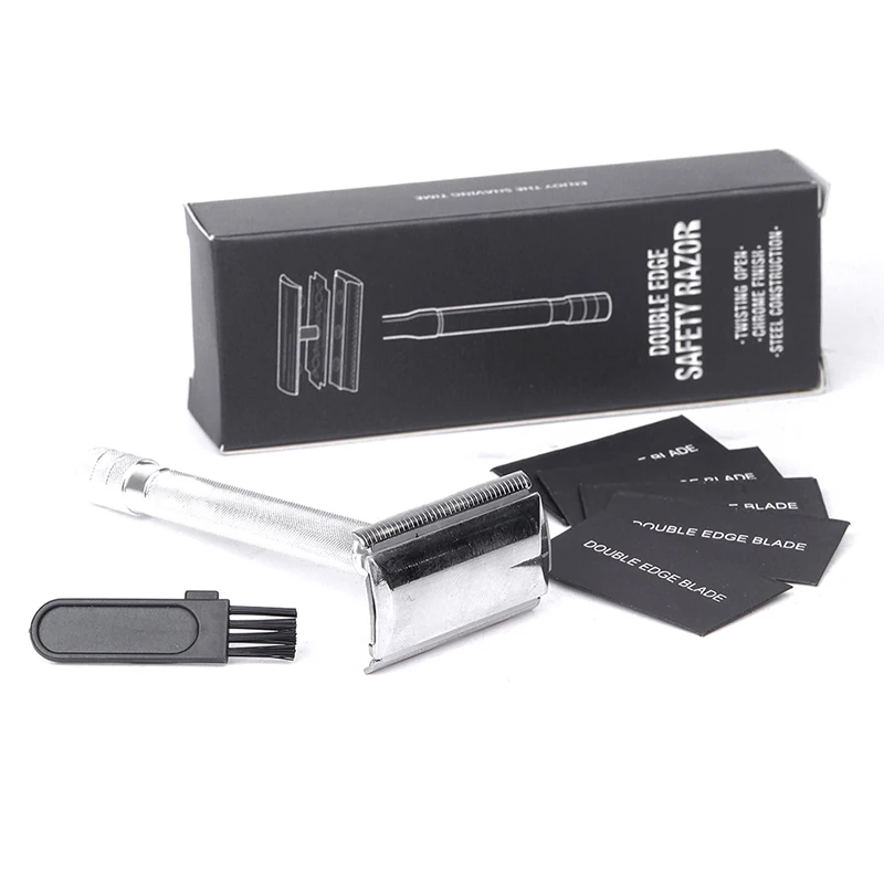 Классическая мужская бритва, регулируемая Безопасная бритва с небольшой щеткой и лезвием