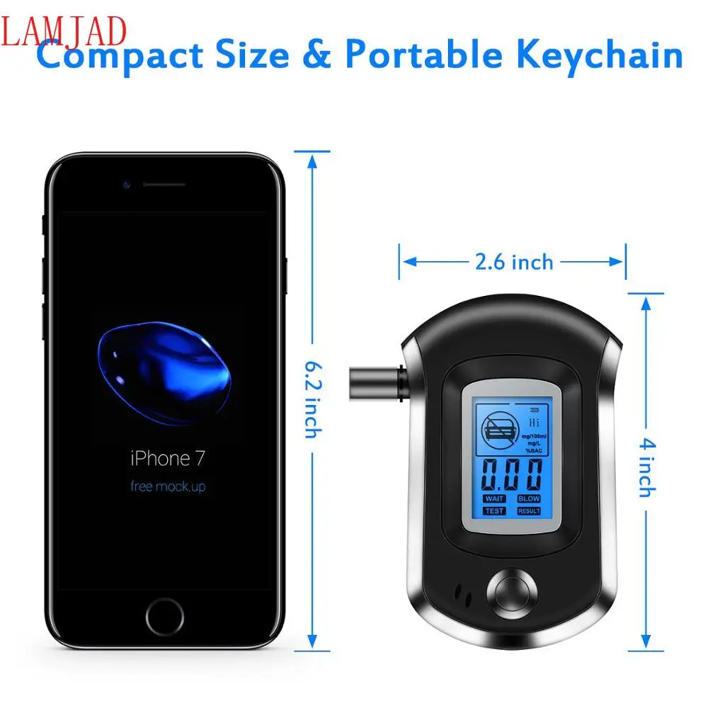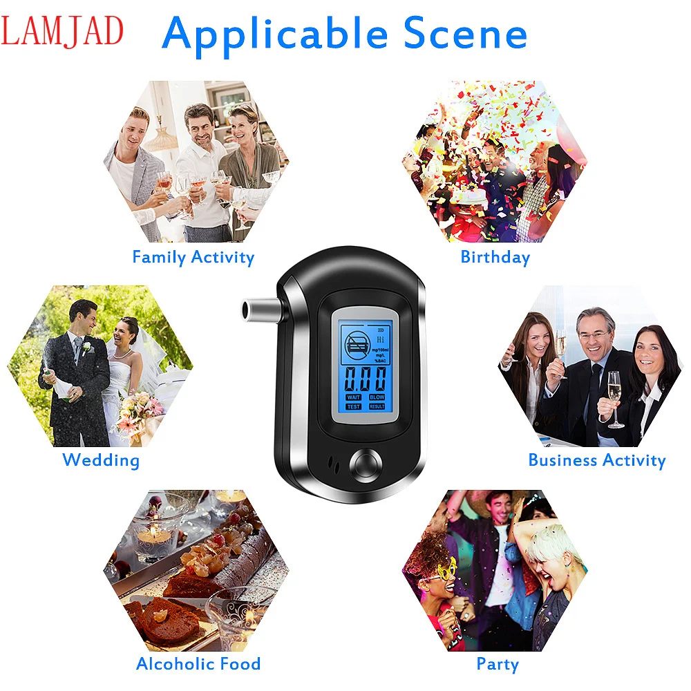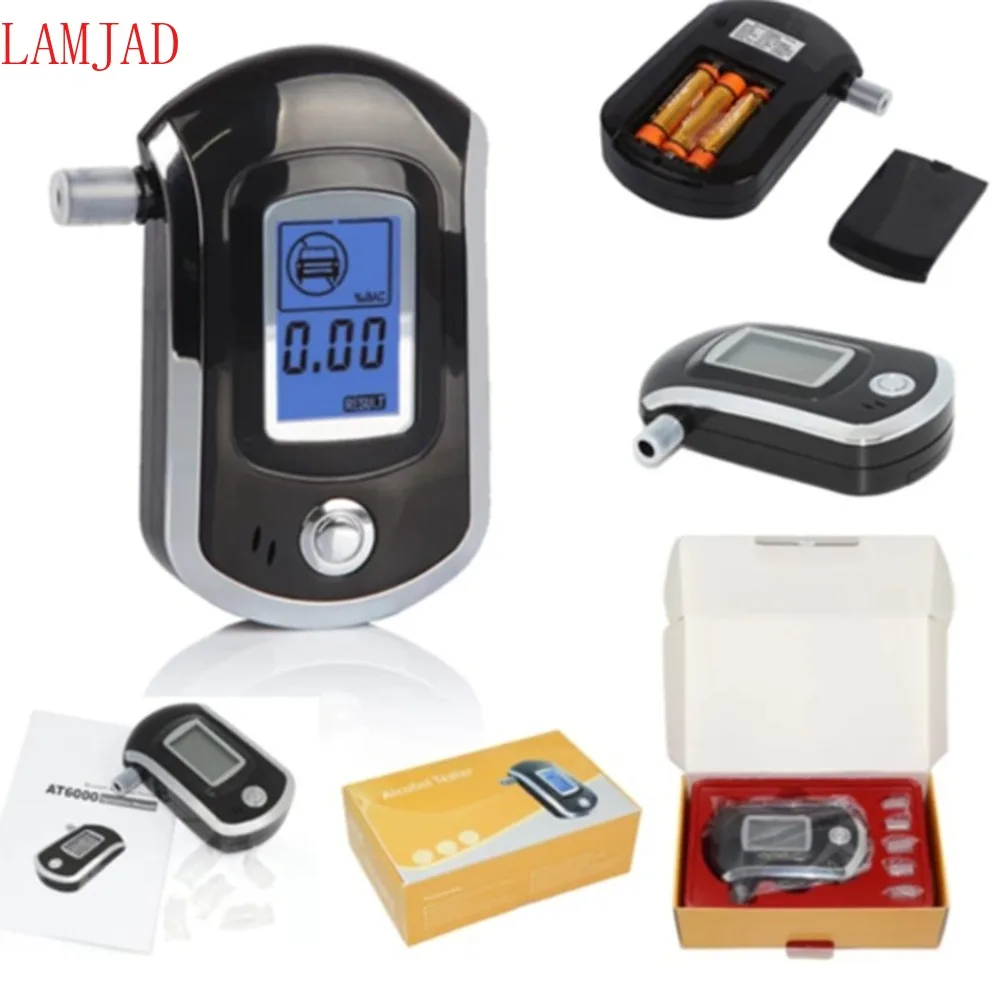 Профессиональный цифровой алкотестер LAMJAD, Алкотестер с ЖК-дисплеем, с 11 мундштуками AT6000