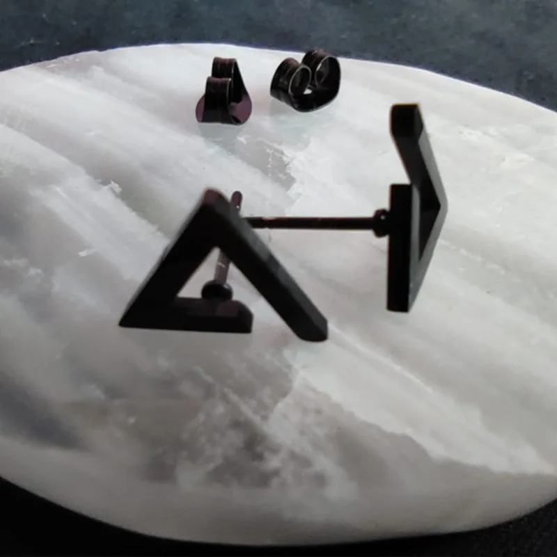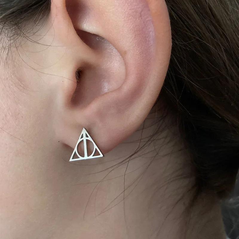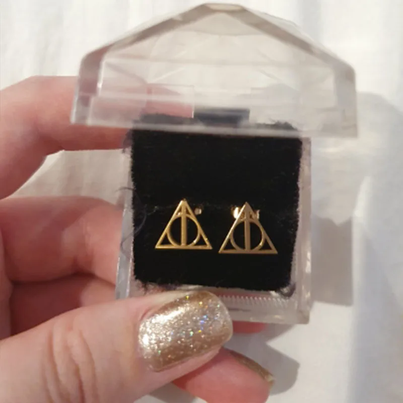 Новые крошечные серьги на Хэллоуин, смертельный треугольник, серьги-гвоздики для женщин и мужчин, золотые винтажные геометрические украшения, подарок на день Святого Валентина