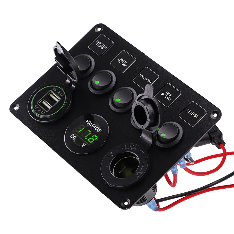 Панель переключателей для автомобиля, лодки, 5 секций, водонепроницаемая, с двумя разъемами USB, 12-24 в светодиодный светодиодная подсветка