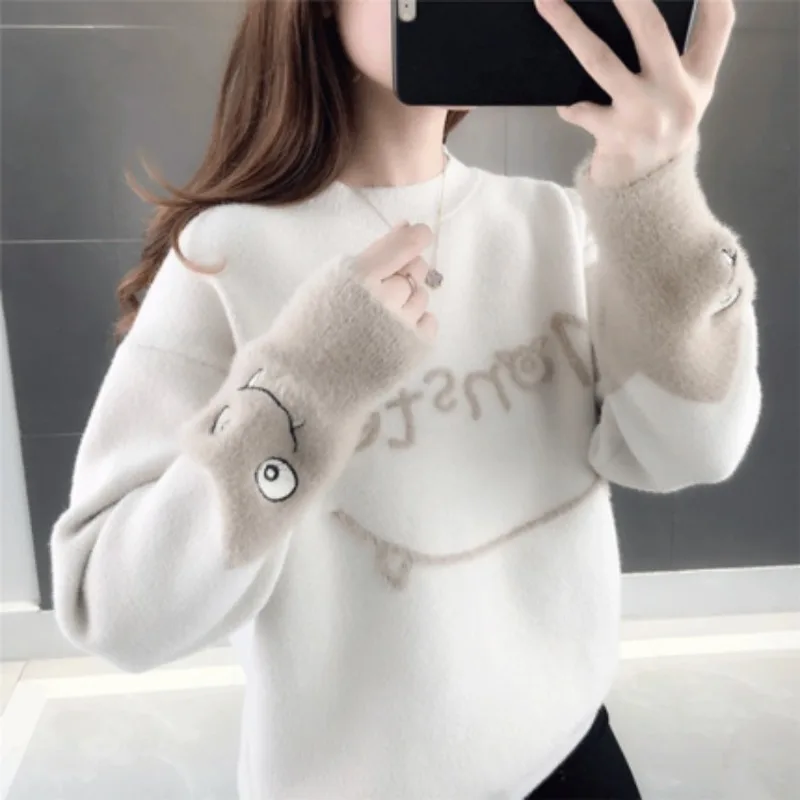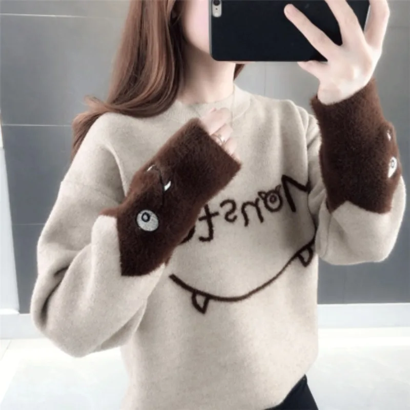 Женский пуловер, милый вязаный свитер персикового цвета со снежинками, Женский Свободный Повседневный пуловер, свитер, зимняя теплая женская одежда