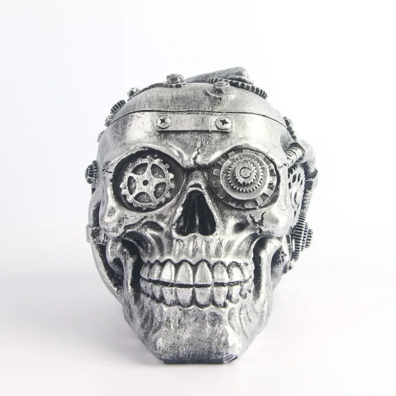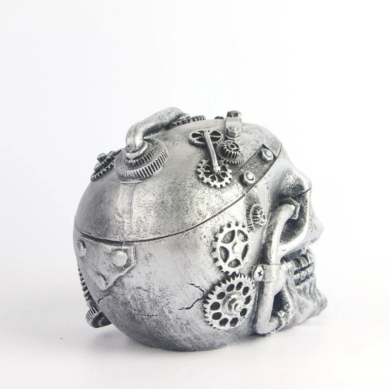 BUF Серебряная Механическая шестеренка, Череп, статуя из смолы, ремесло, стиль панк, Домашняя Декоративная скульптура, декор для Хэллоуина, украшения, подарки