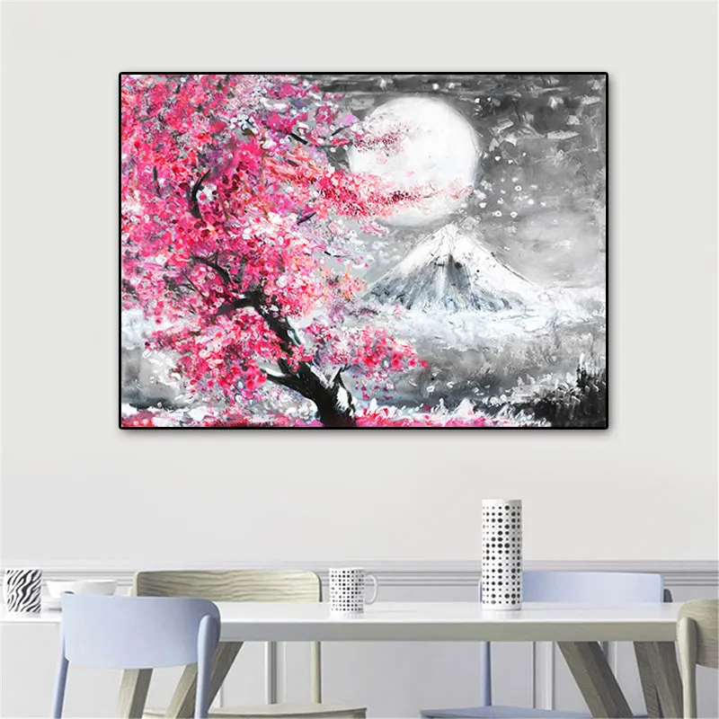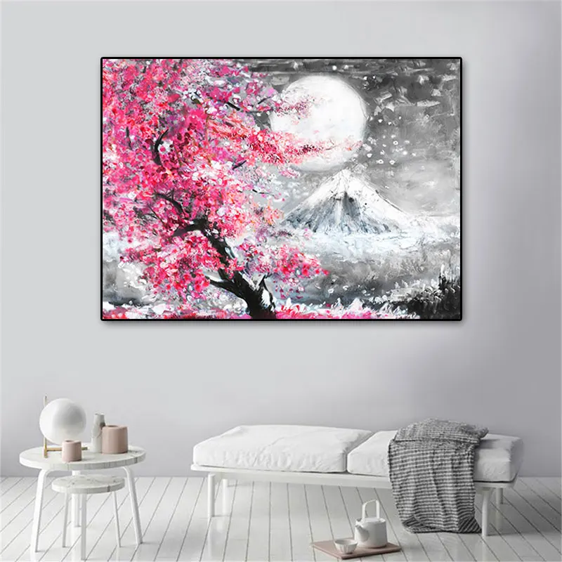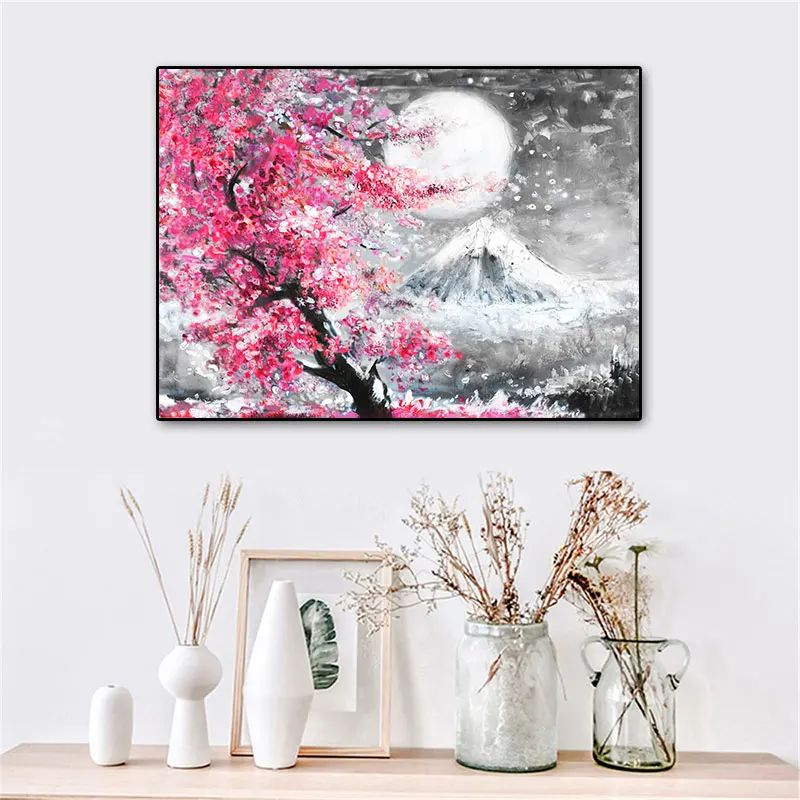 Крепление Fuji Вишневый цветок пейзаж Япония Холст Картина Настенная живопись плакат масляные принты HD картинки для гостиной домашний декор