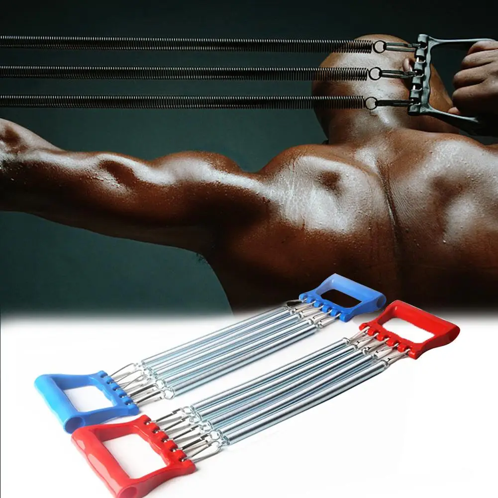 5 пружин, Эспандер для груди, ручной захват, пластиковая ручка, регулируемая прочность, пружинный натяжитель, фитнес, многофункциональный экспандер