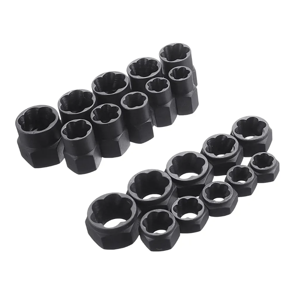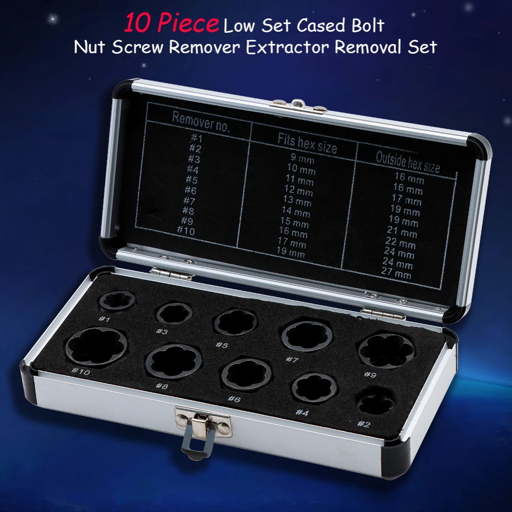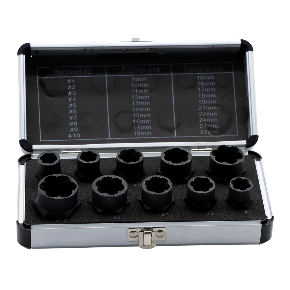 10 шт.компл. поврежденных болтов гаек винтов удаление экстрактор набор инструментов (9-19 мм) точения Резьбонарезной инструмент комплект черных гаек с 4 стиля