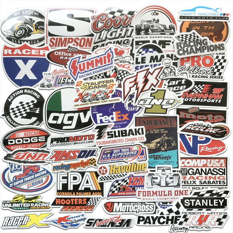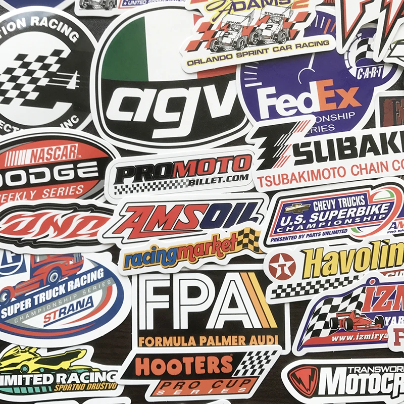 50 шт. гоночный автомобиль Стикеры s машина для укладки JDM Водонепроницаемый Стикеры "сделай сам" для мотокросса гоночный шлем скейтборд велосипед ноутбук Чемодан
