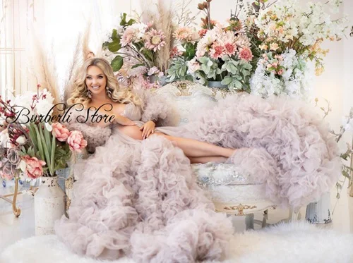 Роскошное Пышное Платье из фатина с оборками в несколько рядов для фотосъемки, длинный халат для беременных женщин, индивидуальный пошив, любой цвет, летние платья