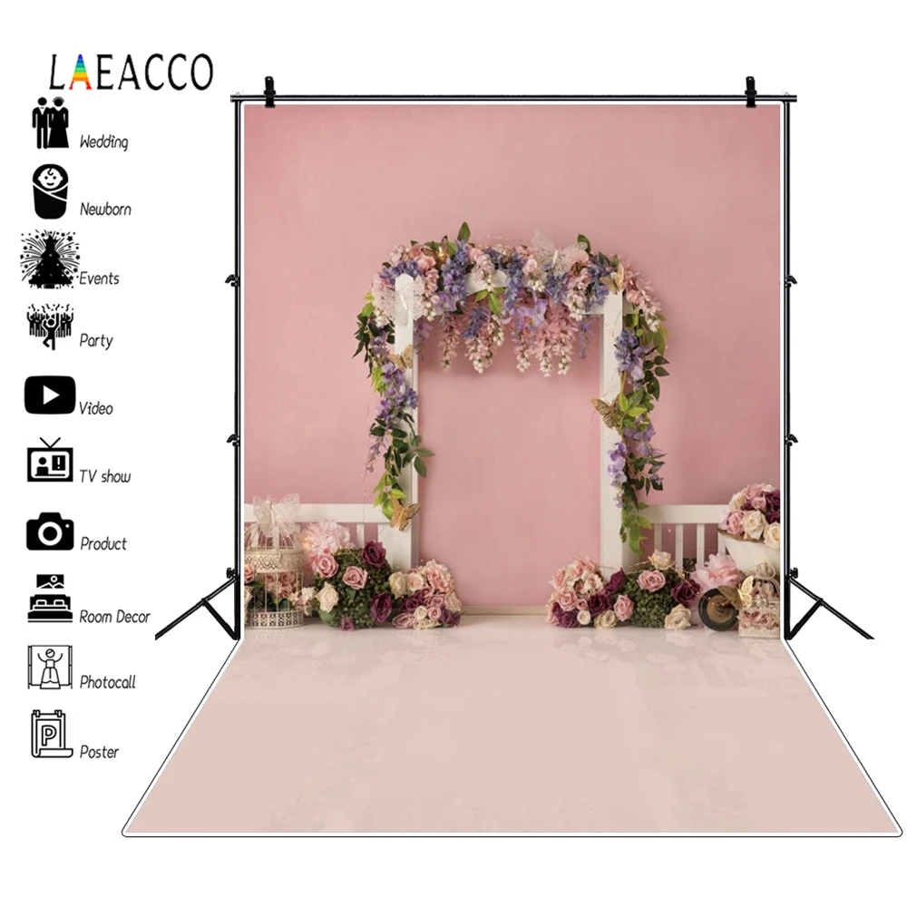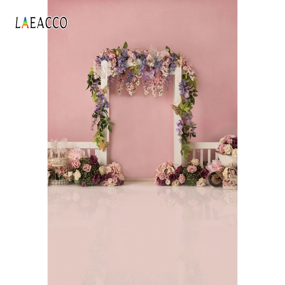 Фоны Laeacco для фотосъемки свадьбы дня рождения розовые цветы трава рамка шары ребенок душ фотография фоны для фотостудии