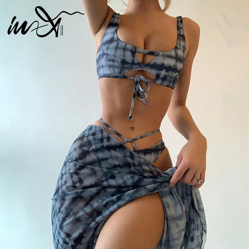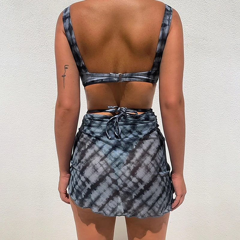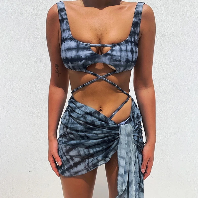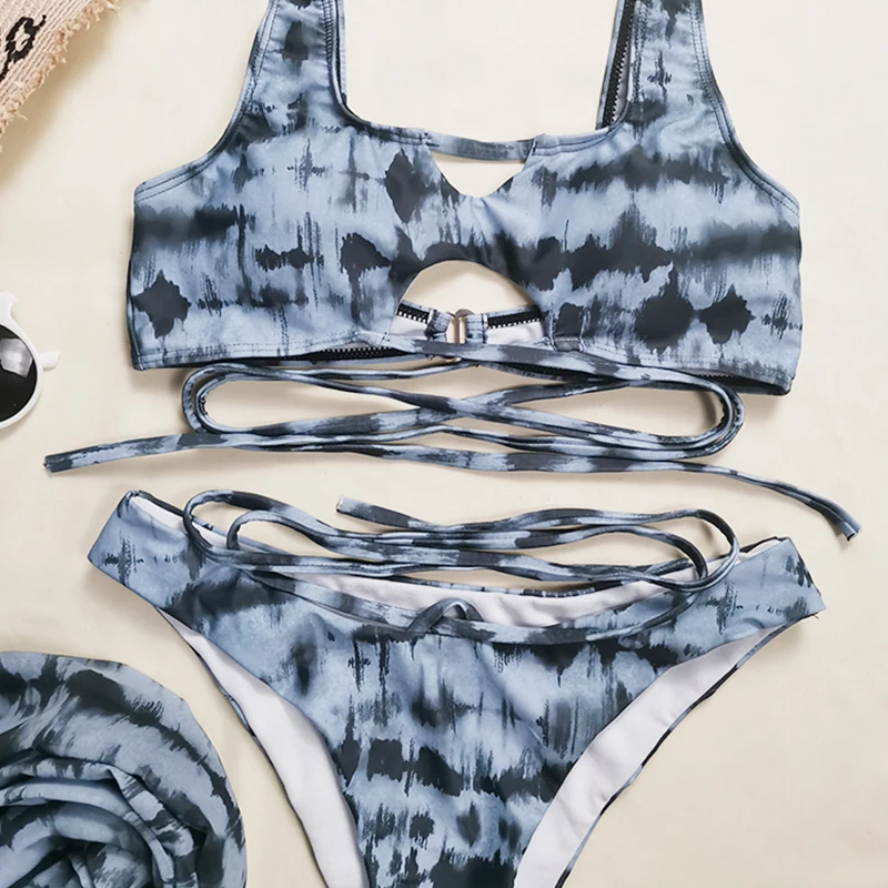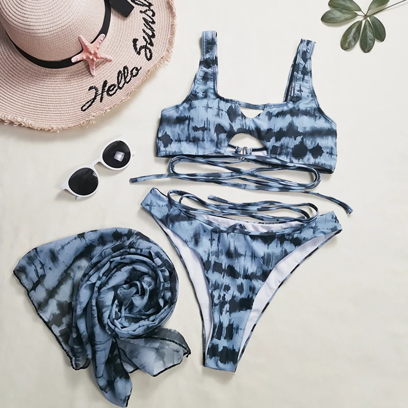 Купальник-бикини женский, голубой, с принтом, 3 шт., 2021