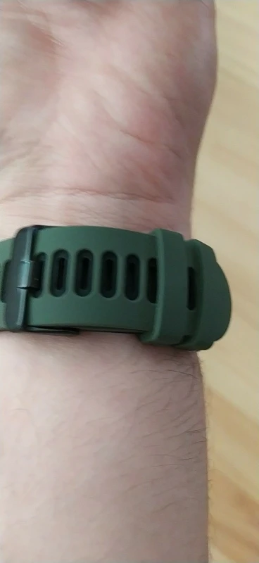 Хороший мягкий силикон, немаркий грязь практически не остаётся. Ношу не снимая, рука не потеет под ним. На руке раздражение абсолютно никаких, у меня очень чувствительная кожа. Заказываю этого продавца уже третий ремешок. До этого заказывала, два разных ремешка мужу на другую модель. Все носятся отлично уже полгода и не думают рваться или терять товарный вид.
