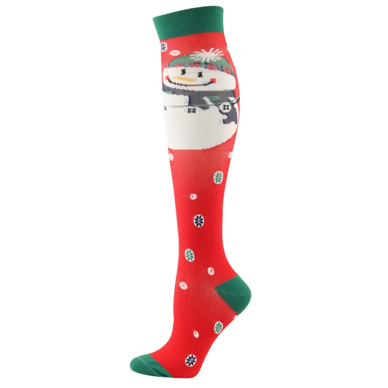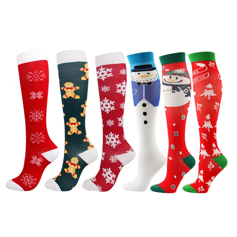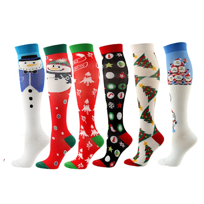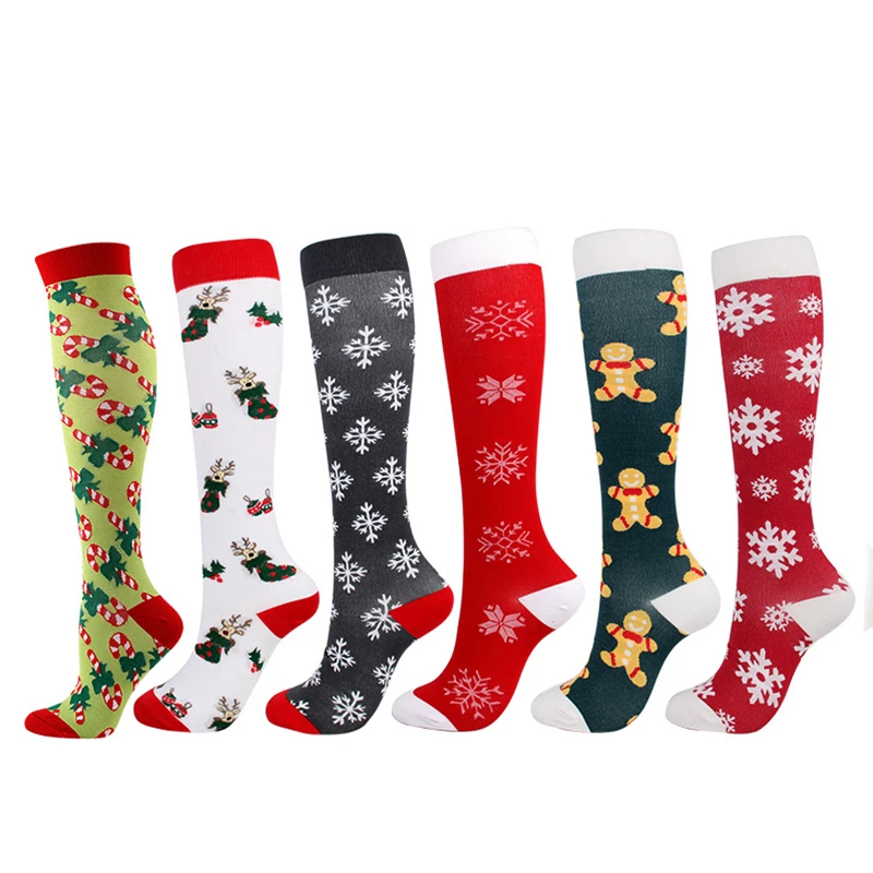 Новые рождественские Компрессионные носки для мужчин и женщин, Рождественская серия, снеговик, лось, Санта-елка, Рождественский узор, компрессионные чулки