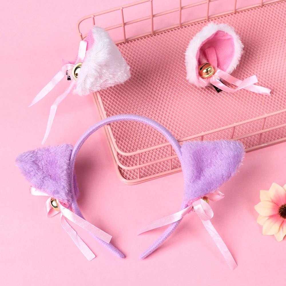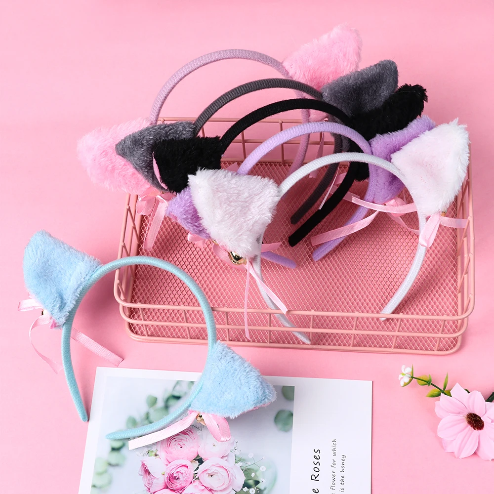 Аниме Косплей кошачьи ушки мультяшный головной убор плюшевый маленький колокольчик милые модные женские Клубные вечерние повязки для волос аксессуары для волос