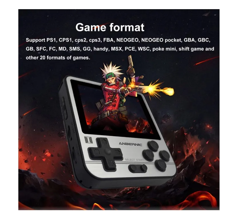Поддержка вибрирующих игр и идеальная поддержка PS1, CPS1, CPS2, CPS3,FBA, NEOGEO, NEOGEO POCKET, GBA, GBC, GB, SFC, FC, MD, SMS, GG, Handy, MSX, PCE, WSC, POKE MINI, игры для трансплантации и т. д. 20 видов форматов игр. Скорость игры 1: 1, 60 Гц. Клиент также может загрузить больше игр с веб-сайта самостоятельно.