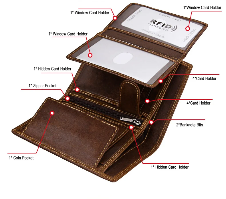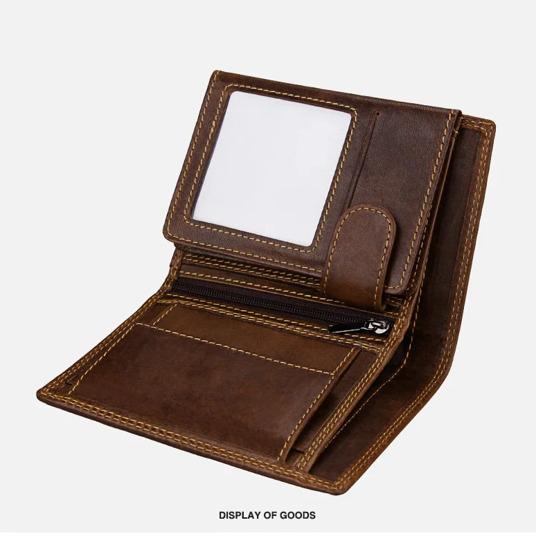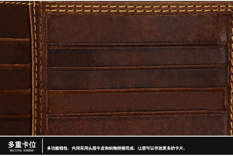 Мужской кошелек из натуральной коровьей кожи, с отделением для монет, большой емкости, для нескольких карт, в стиле ретро, 100%