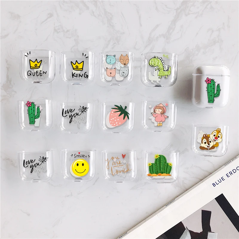 Чехол для Airpods, симпатичный Прозрачный чехол для наушников Airpod 2, чехол с портом для зарядки, мультяшный жесткий чехол с рисунком животного для Airpod
