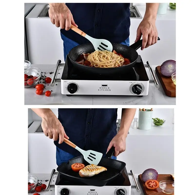 Набор кухонных принадлежностей из силикона премиум-класса, набор токарных щипцов, лопатки, ложки для супа, антипригарная лопатка, масляная щетка, кухонный инструмент