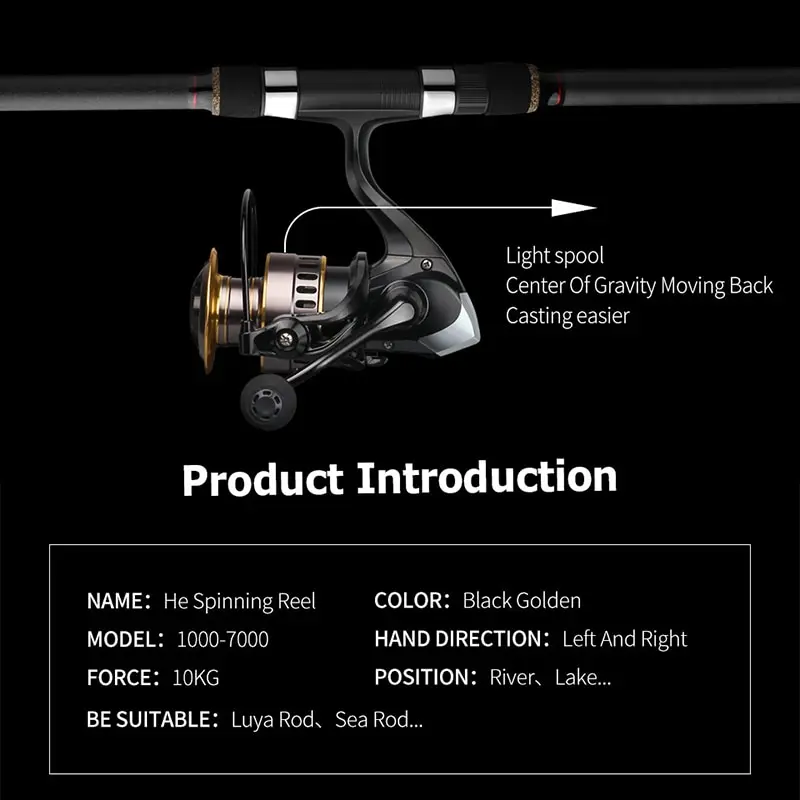 Посылка входит: Рыболовная катушкаРазмер: HE1000-7000 Максимальное сопротивление 10 кгЦвет: черныйМатериал: пластикРыболовная катушка HE1000-7000 Max Drag 10 кг; Катушка для рыбалки 5,2: 1 высокоскоростная металлическая Катушка спиннинговая катушка для удочки Saltwater
