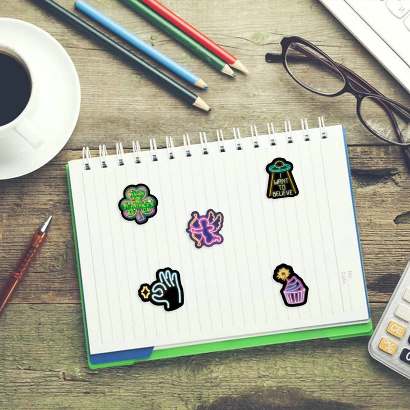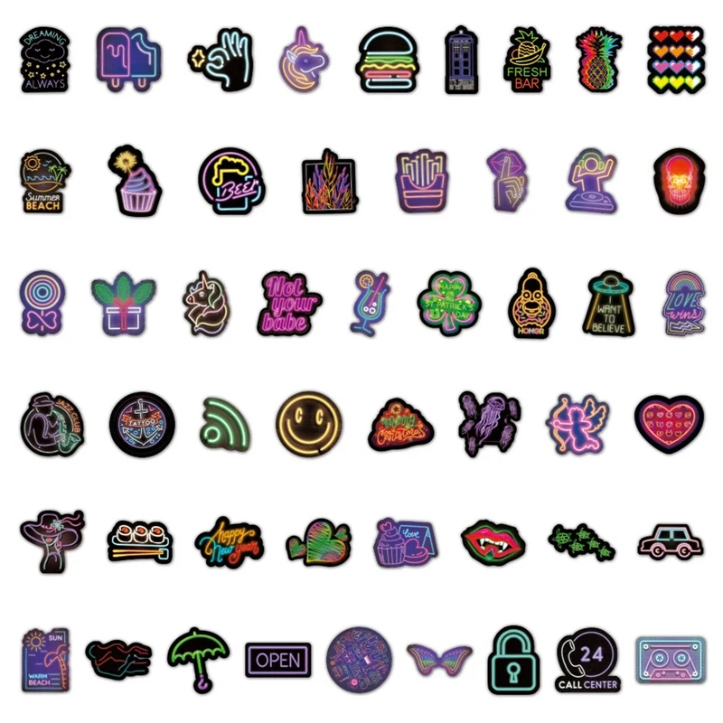 Наклейки неоновые граффити для скейтборда, наклейки на скутер, водонепроницаемые Мультяшные креативные модные украшения для велосипеда, телефона, 50 шт.
