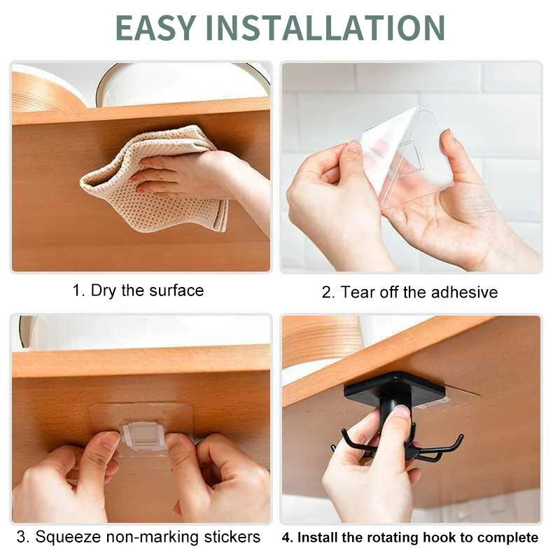 1. Протрите шкаф чистым 2. Оторвите клей 3. Выдавите клей силой, чтобы выпустить воздух 4. Поместите вращающийся крючок Примечание: используйте после стояния в течение 24 часов