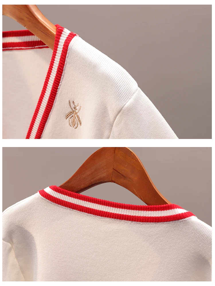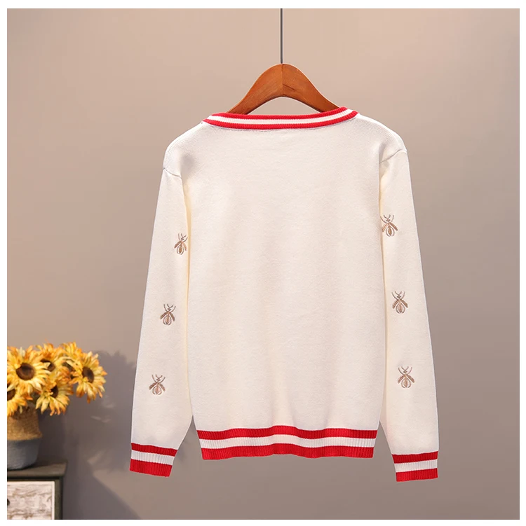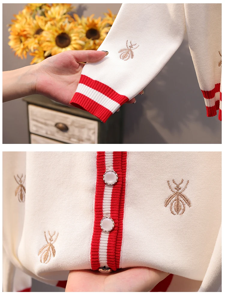 Новинка 2021, женские свитера, вязаный кардиган с вышивкой пчелы, рубашка с длинным рукавом, короткое тонкое пальто, женская одежда, оптовая продажа
