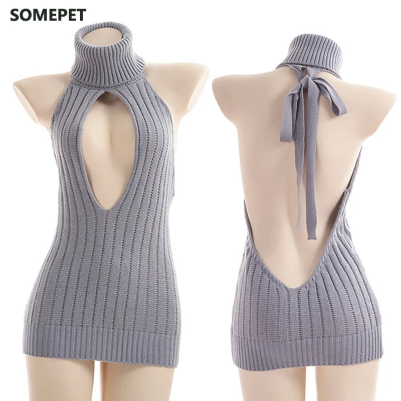 Женский трикотажный свитер с открытой спиной, водолазка с открытой грудью, Осенние Пуловеры 2020
