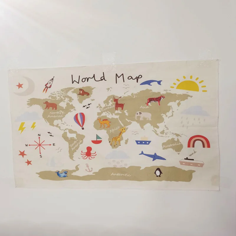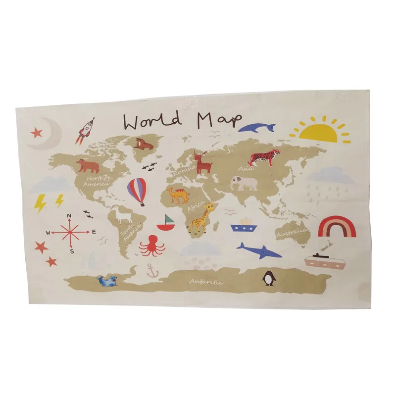 Карта гобелен настенный мультфильм животных карта дети ребенок Фотография реквизит Фон Ткань Гостиная Спальня украшениеРазмер: 80x60 смМатериал: хлопокПосылка: 1 шт. гобелен2 шт. х липкий крючок2 шт. х маленький крючок