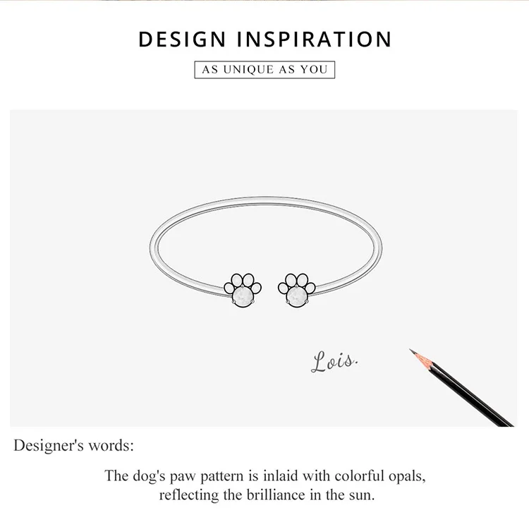 WOSTU 925 стерлингового серебра собачьих лап след браслет Регулируе...