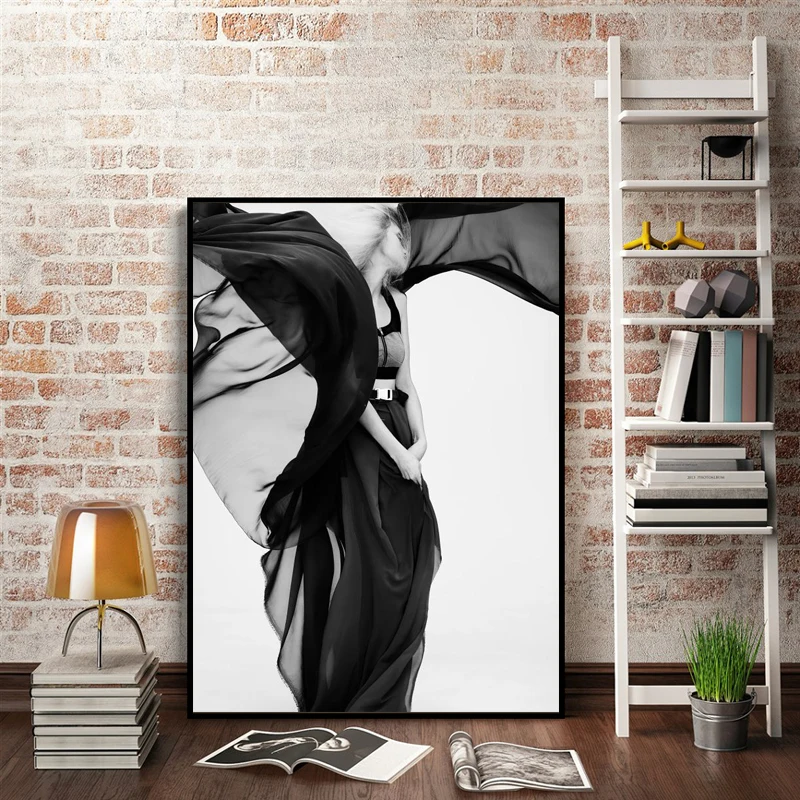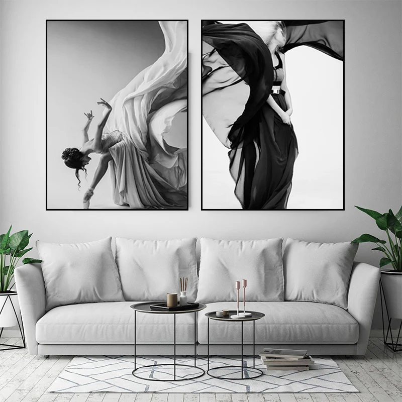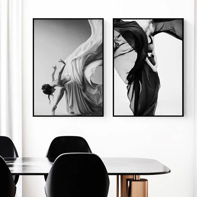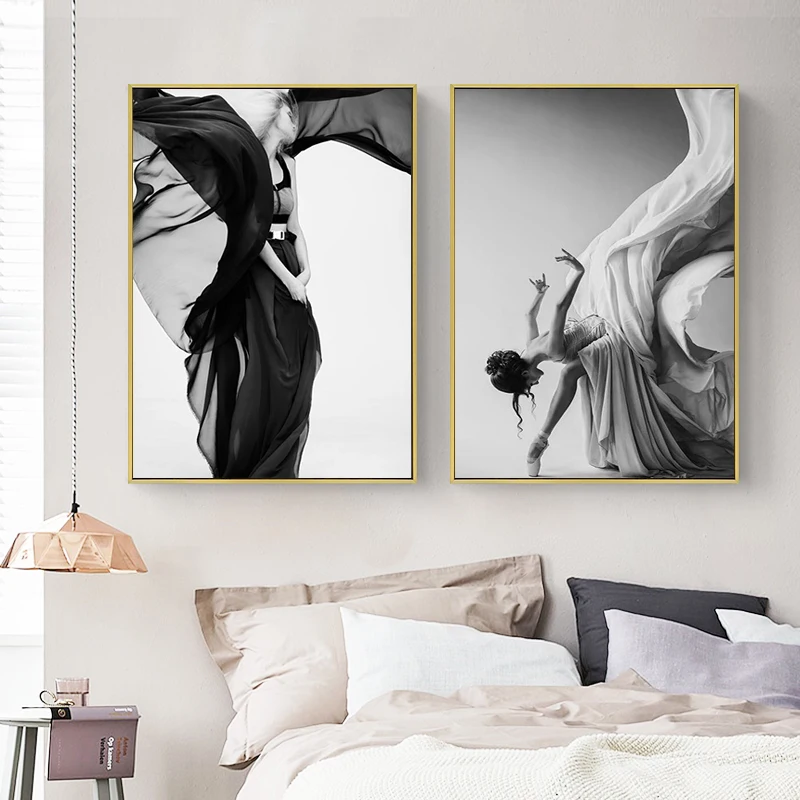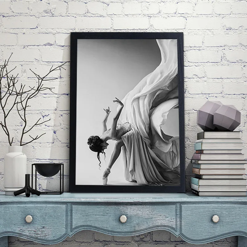 Современного балета Танцы для плакатов и женская обувь из парусины с принтом Живопись Рисунок искусство стены черный, белый цвет картинки для Гостиная Спальня HD0036