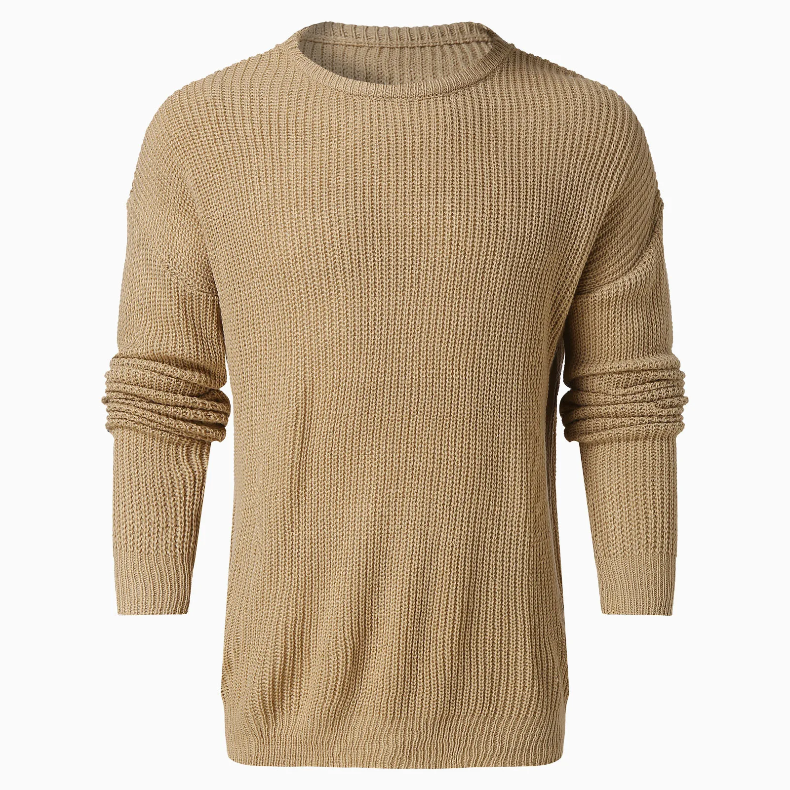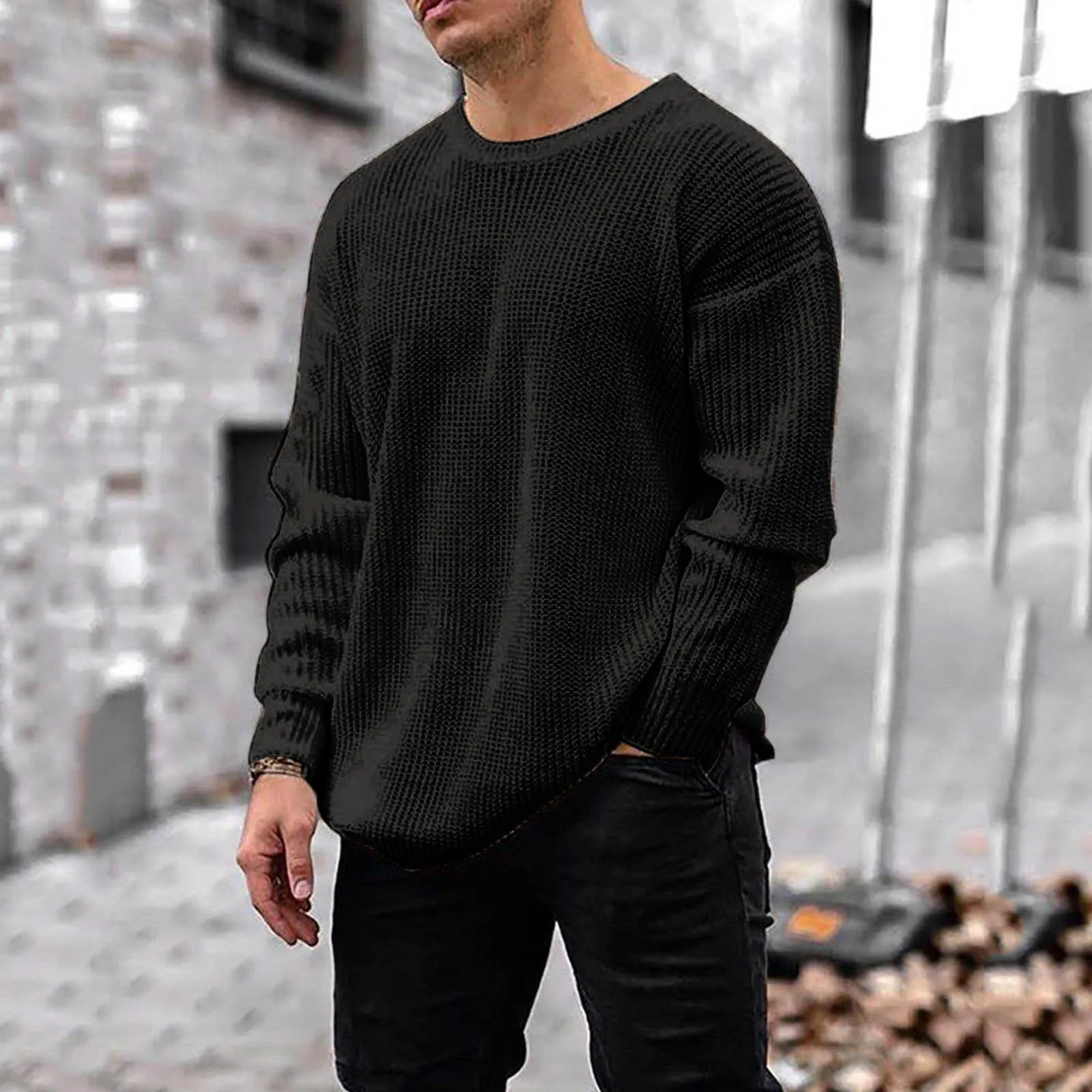 Мужской однотонный свитер с длинными рукавами и круглым вырезом на осень и зиму