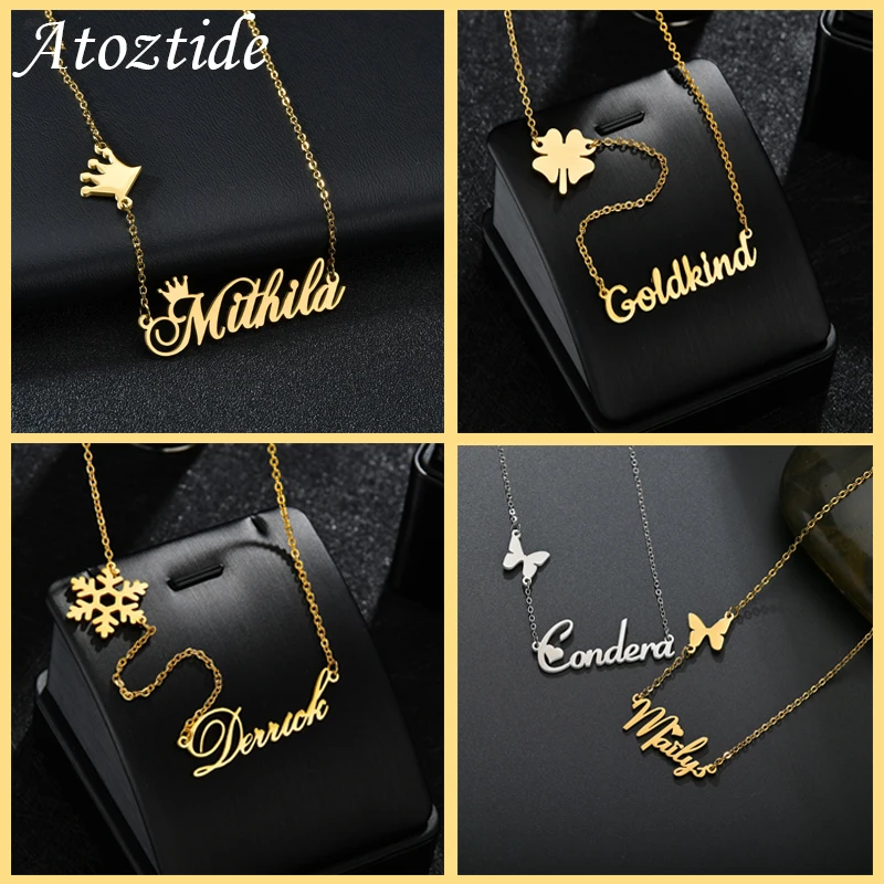Ожерелье женское из нержавеющей стали с подвеской-бабочкой, модное ожерелье с именем под заказ, чокер с надписью под заказ, Ювелирное Украшение