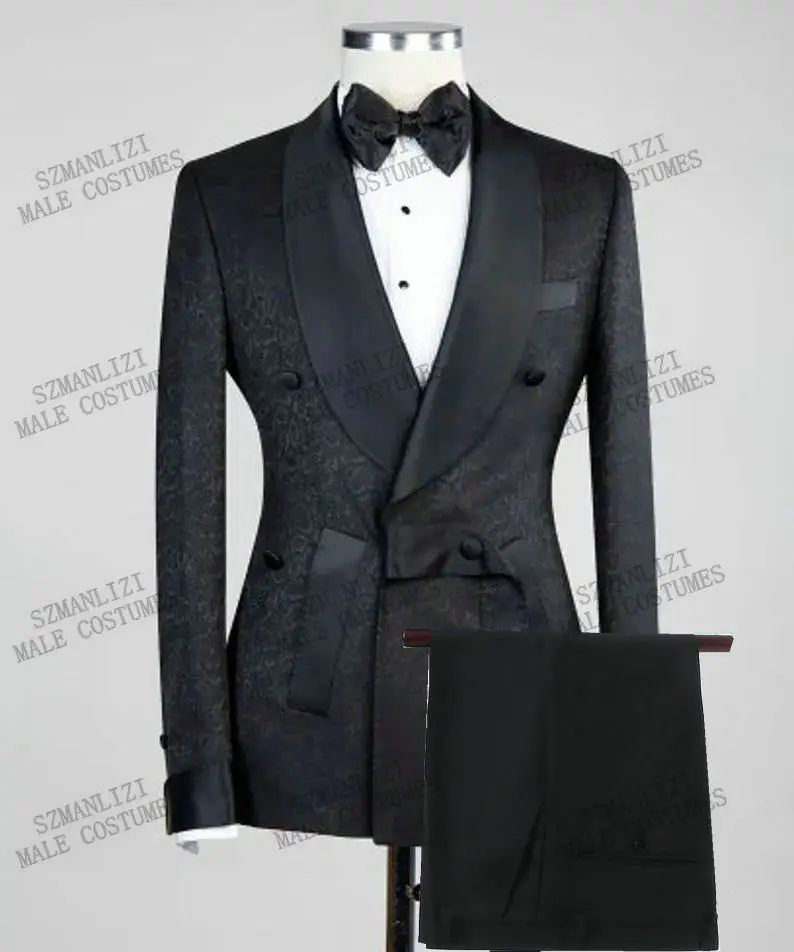 Последний дизайн пальто брюки 2021 Белый Жаккардовый двубортный мужские свадебные костюмы приталенный смокинг жениха выпускного вечера