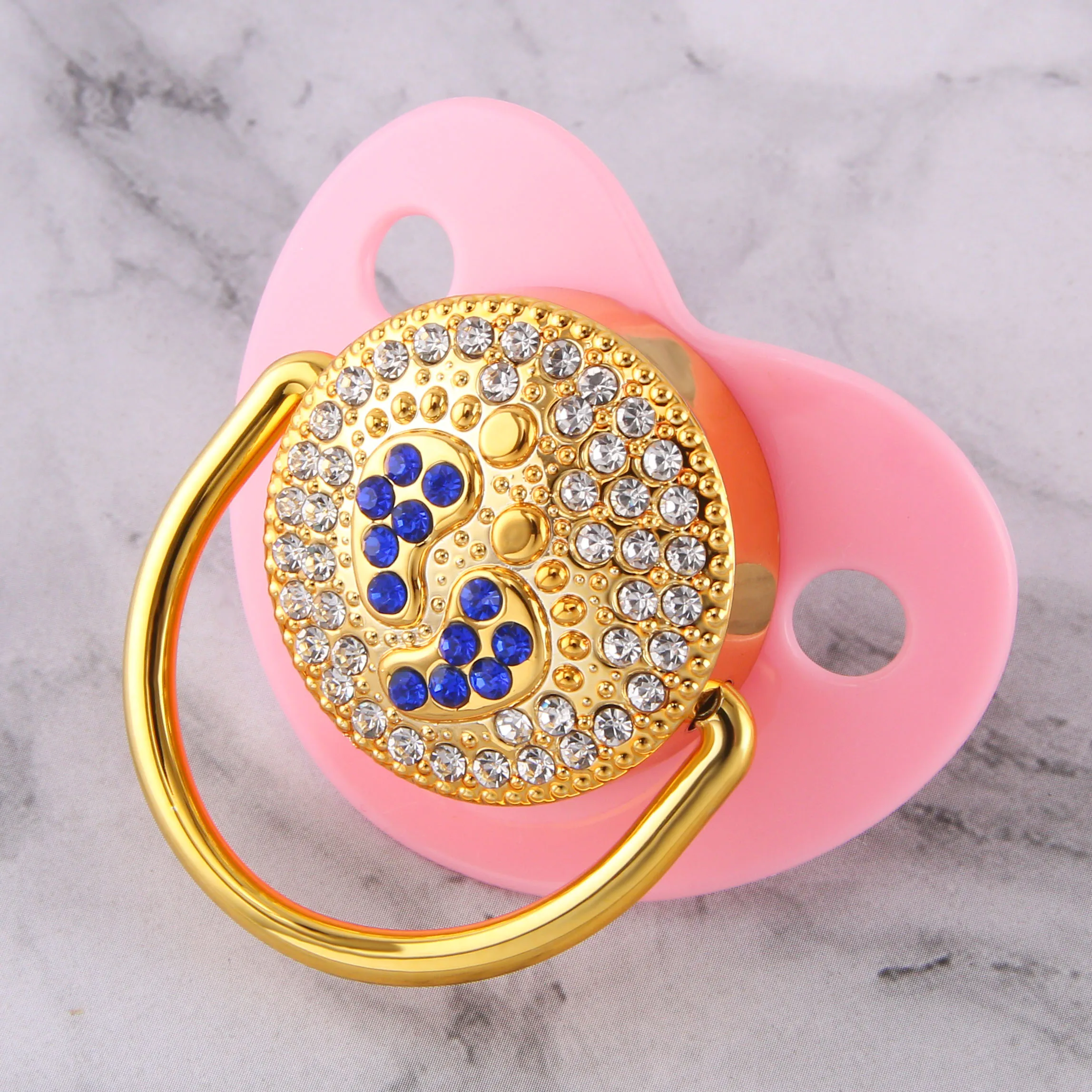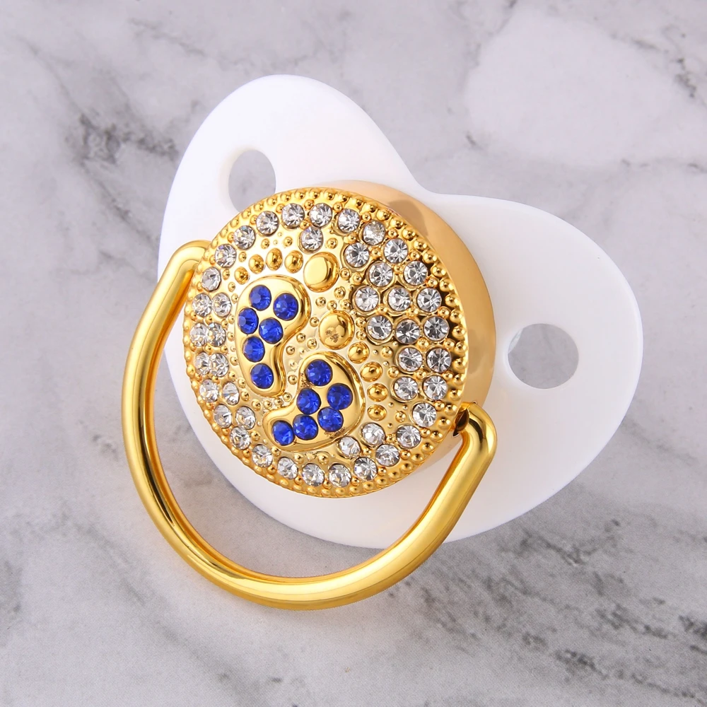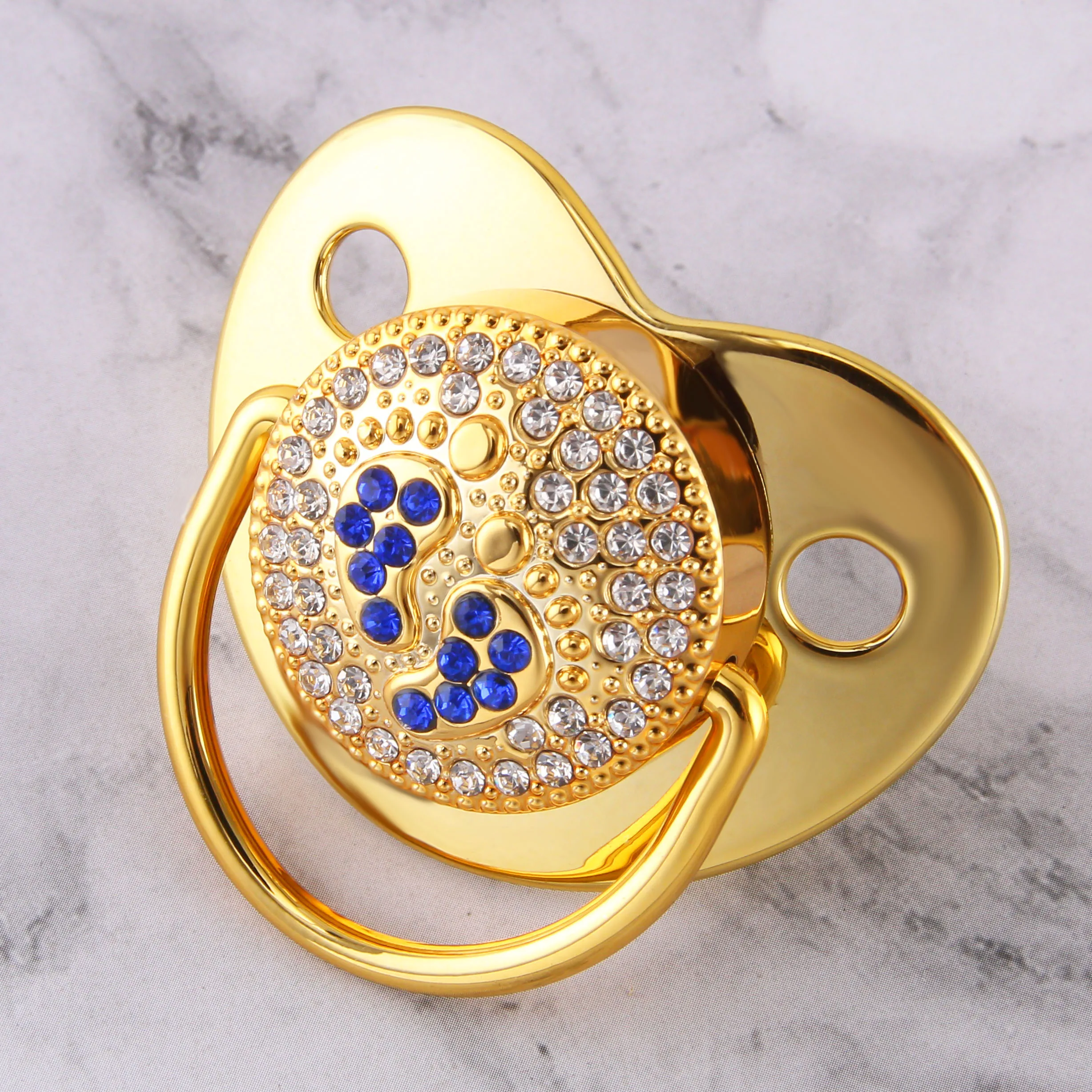 Силиконовая детская Ортодонтическая пустышка для новорожденных, Золотая пустышка для сосков, пустышка, Синие стразы, Sucette, от 0 до 18 месяцев