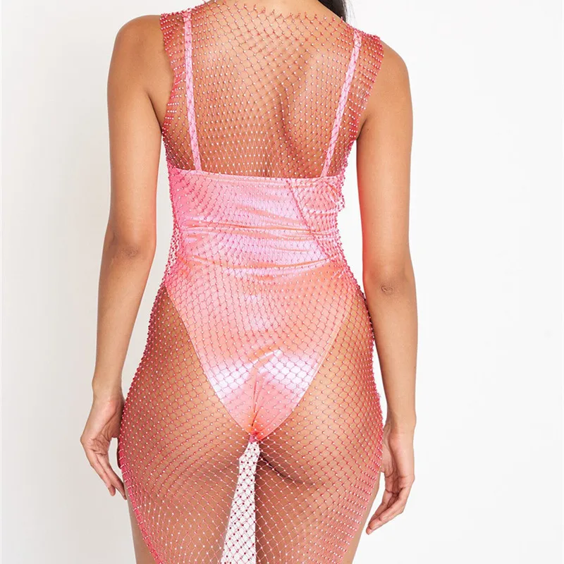 Сексуальные сетчатые ажурные платья со стразами, женское летнее вяз...