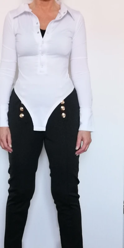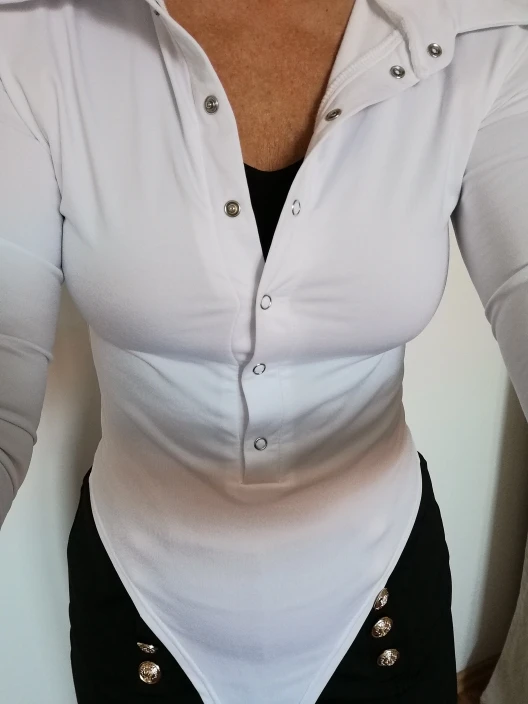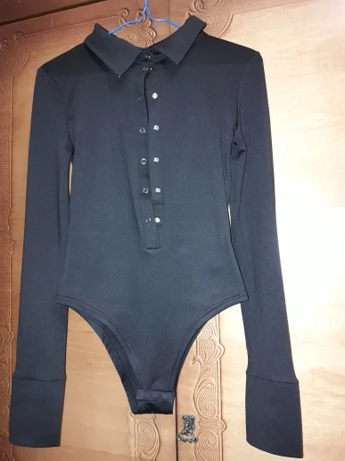 Прекрасный боди, выглядит превосходно! Очень приятная ткань, отличная фактура. Хорошие кнопки, фасон "в обтяжку". В общем одни плюсы, очень довольны покупкой!