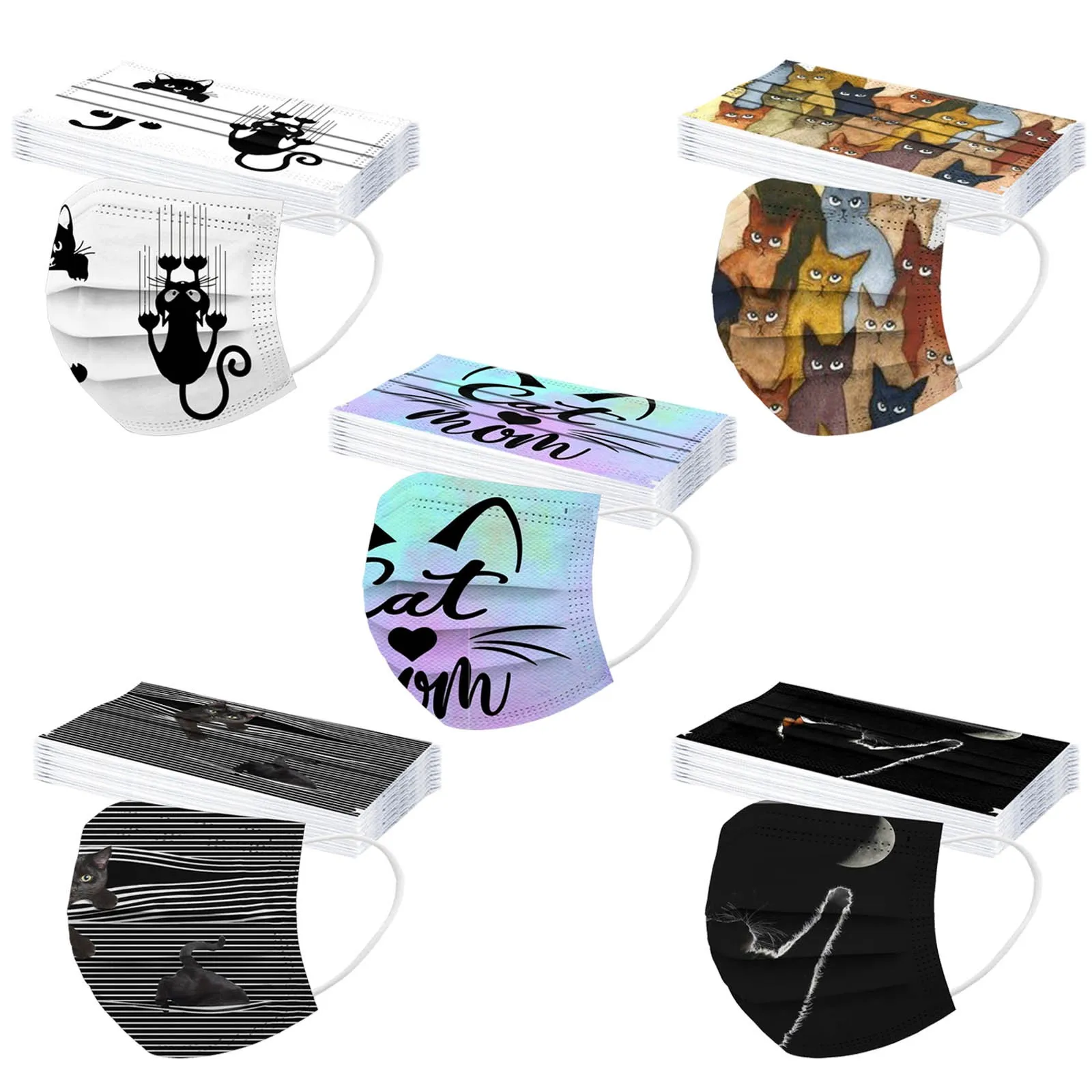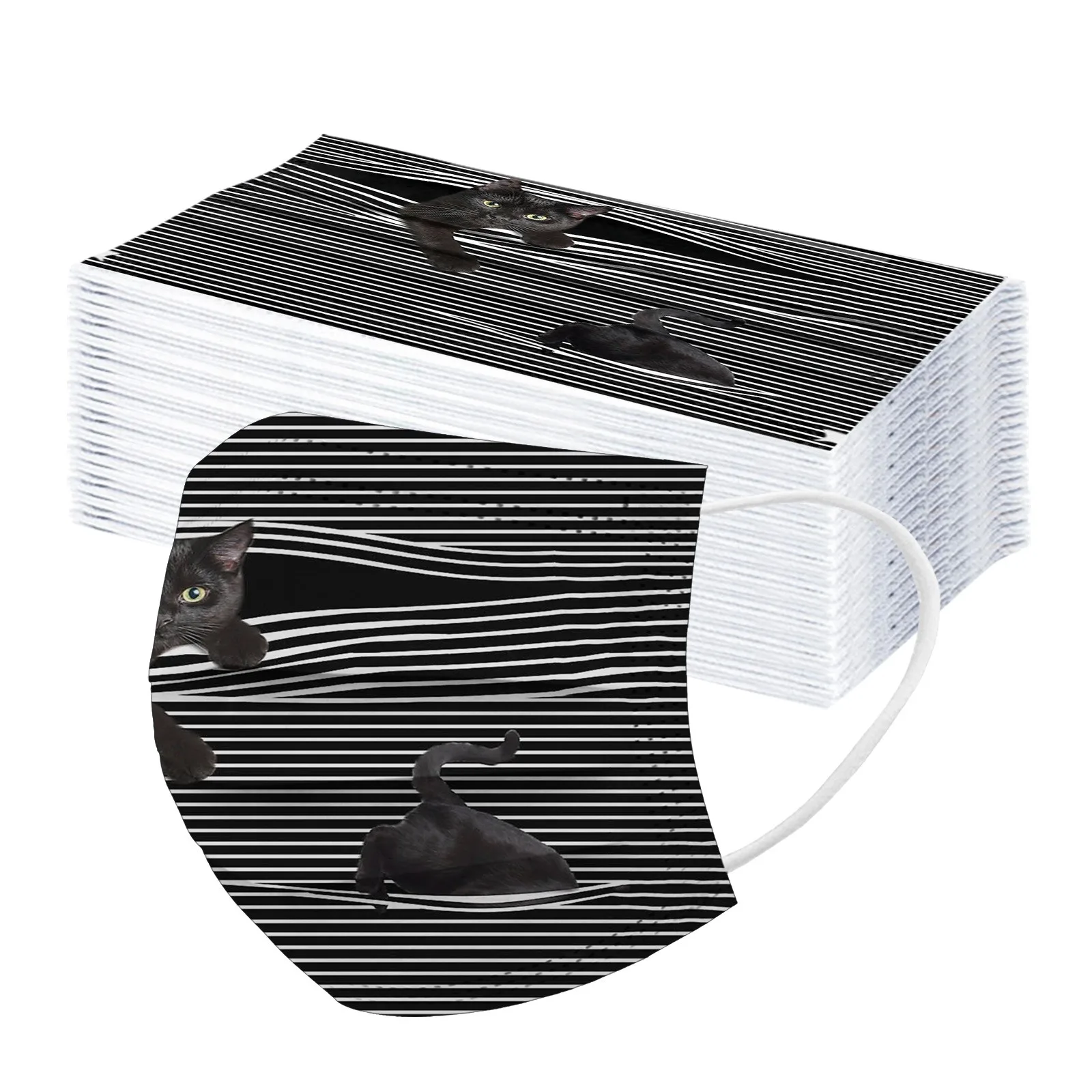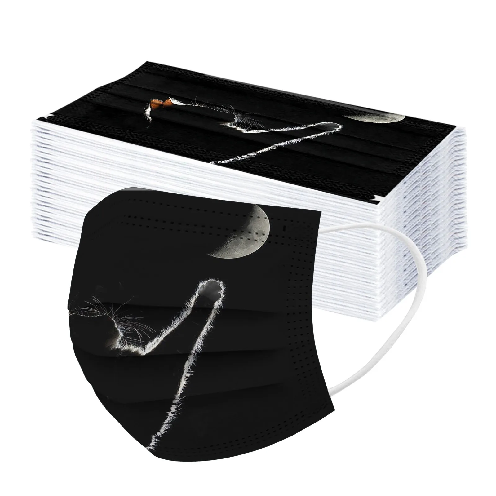 50PCSUnisex Черный кот печатных мягкий Маски Рот Маски Для Взрослых 3-слойный защитный уход за кожей одноразовые маски для лица Mascarilla