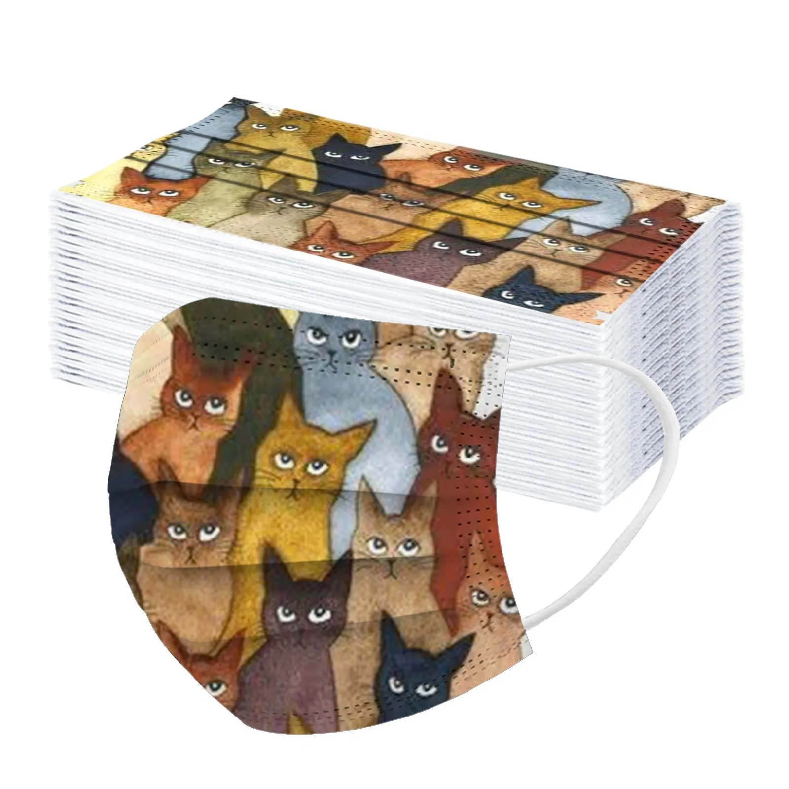 Маска для лица одноразовая с принтом кошки и мужчин, 3 слоя маски с...