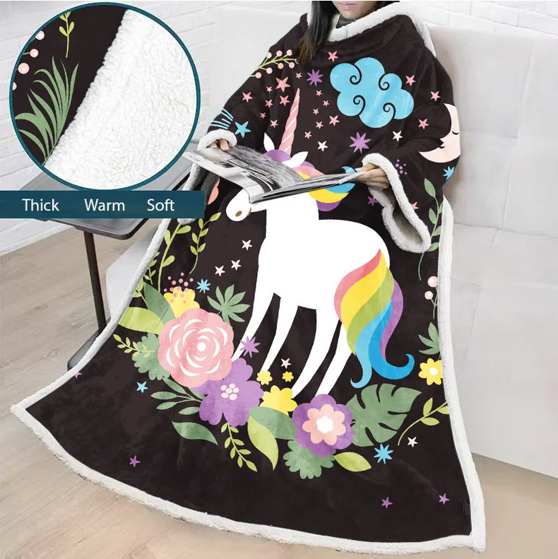 Новое поступление одеяло большого размера с 3D принтом единорога мягкое теплое зимнее Флисовое одеяло с рукавом Рождественский подарок