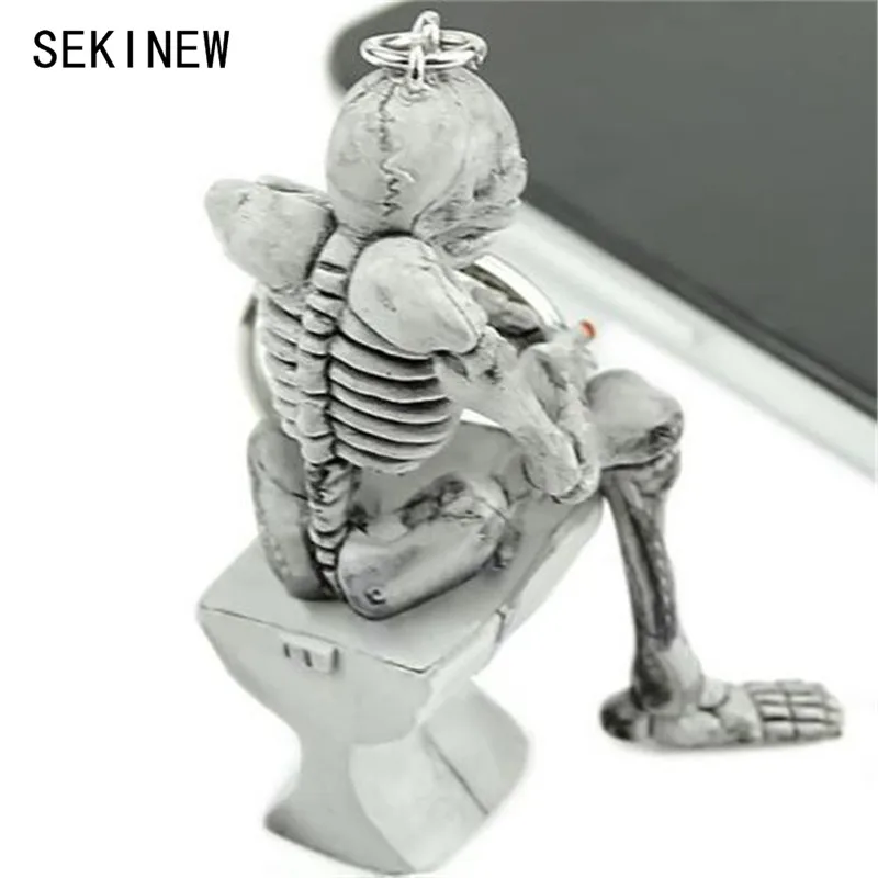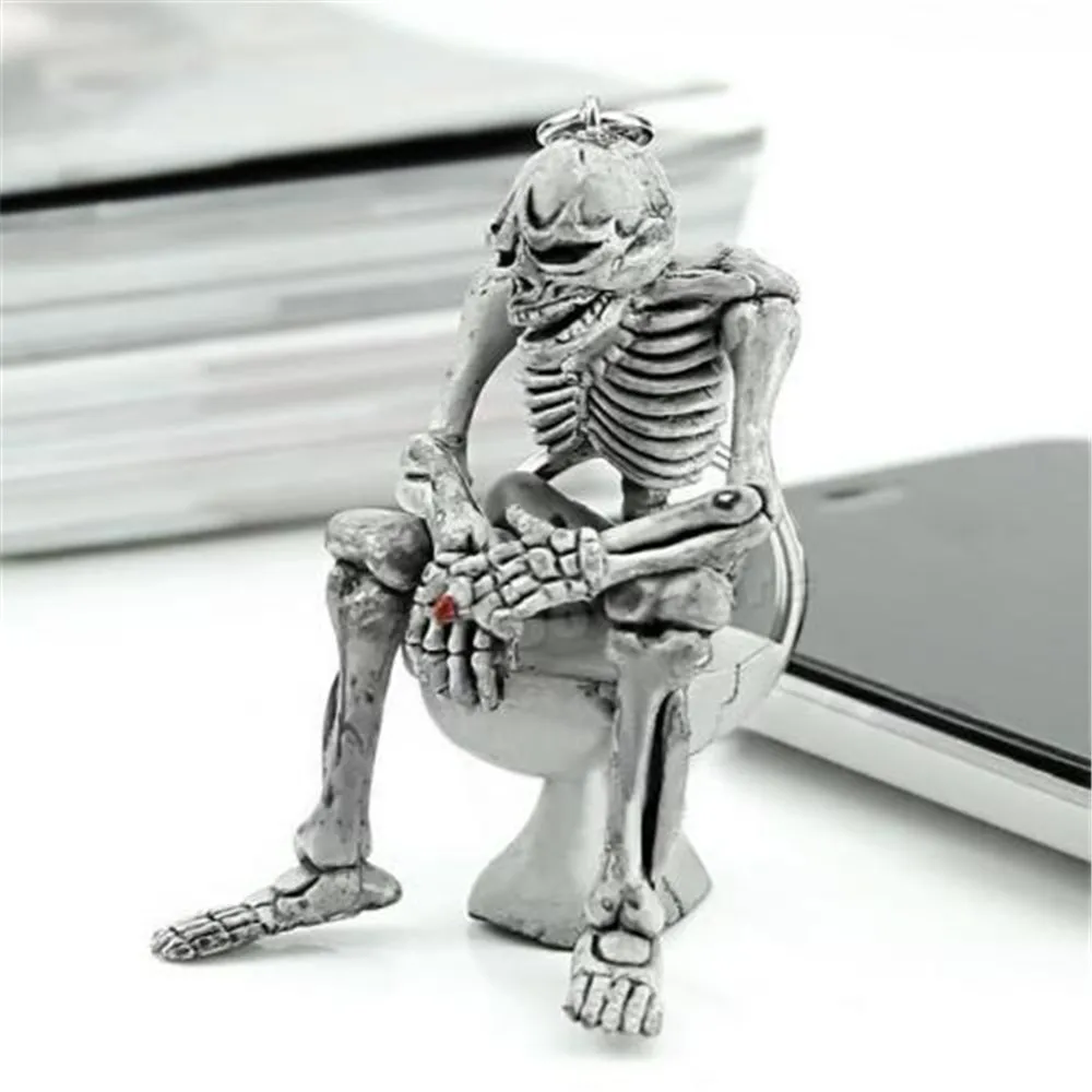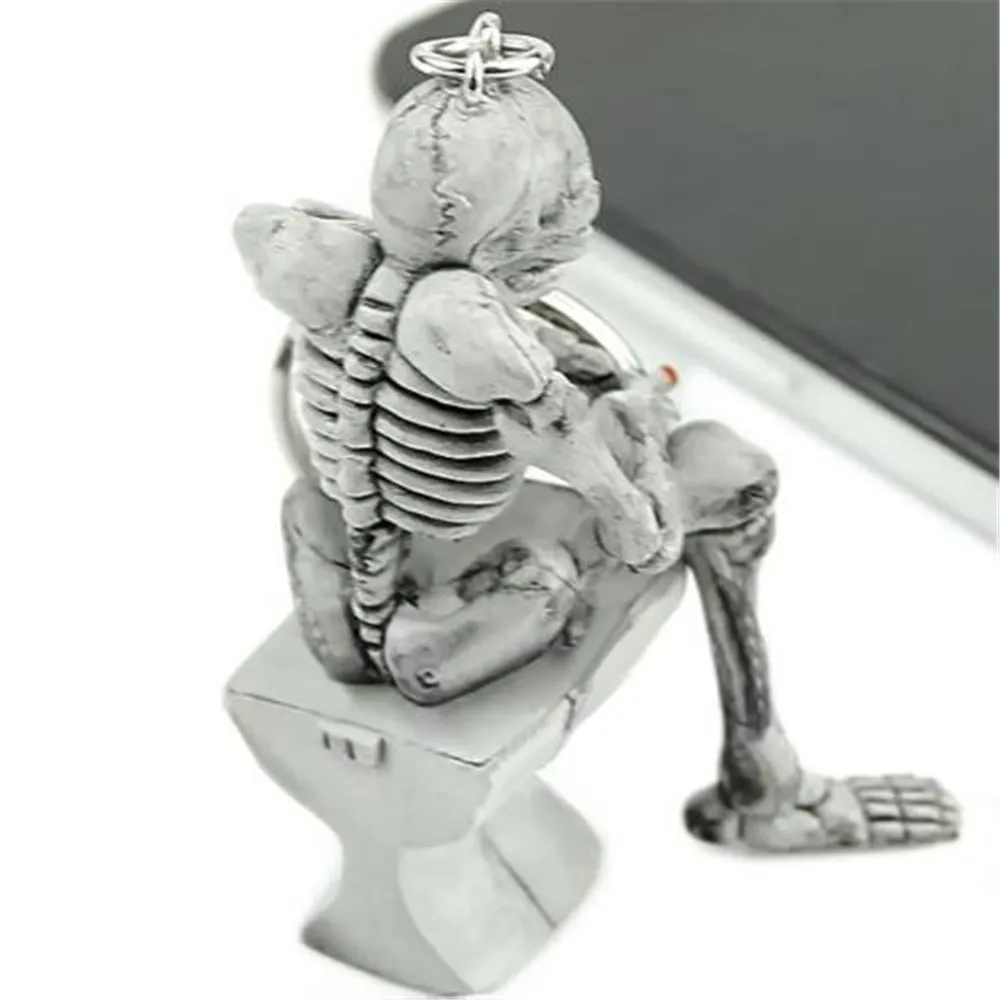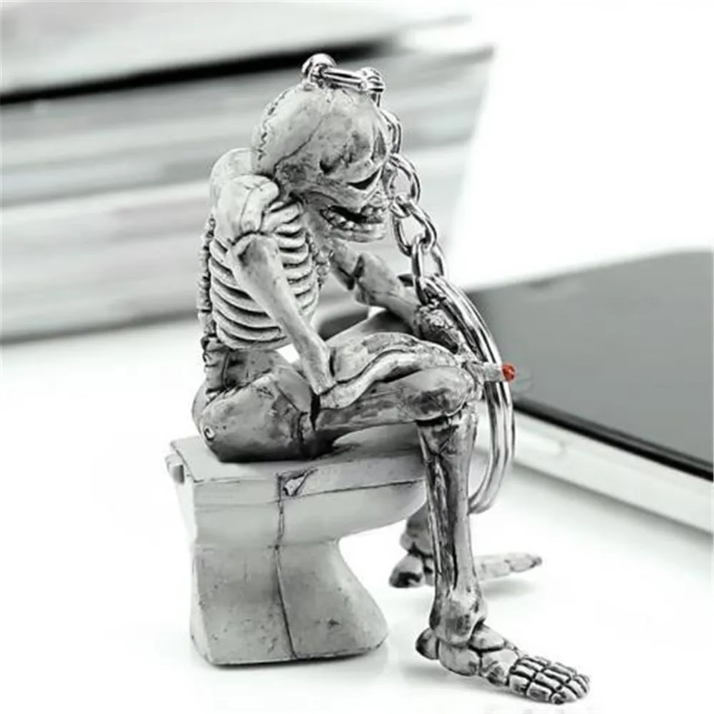 Этот серый брелок украшен черепом, унитазом и резиной, что является модным и креативным подарком для ваших друзей.