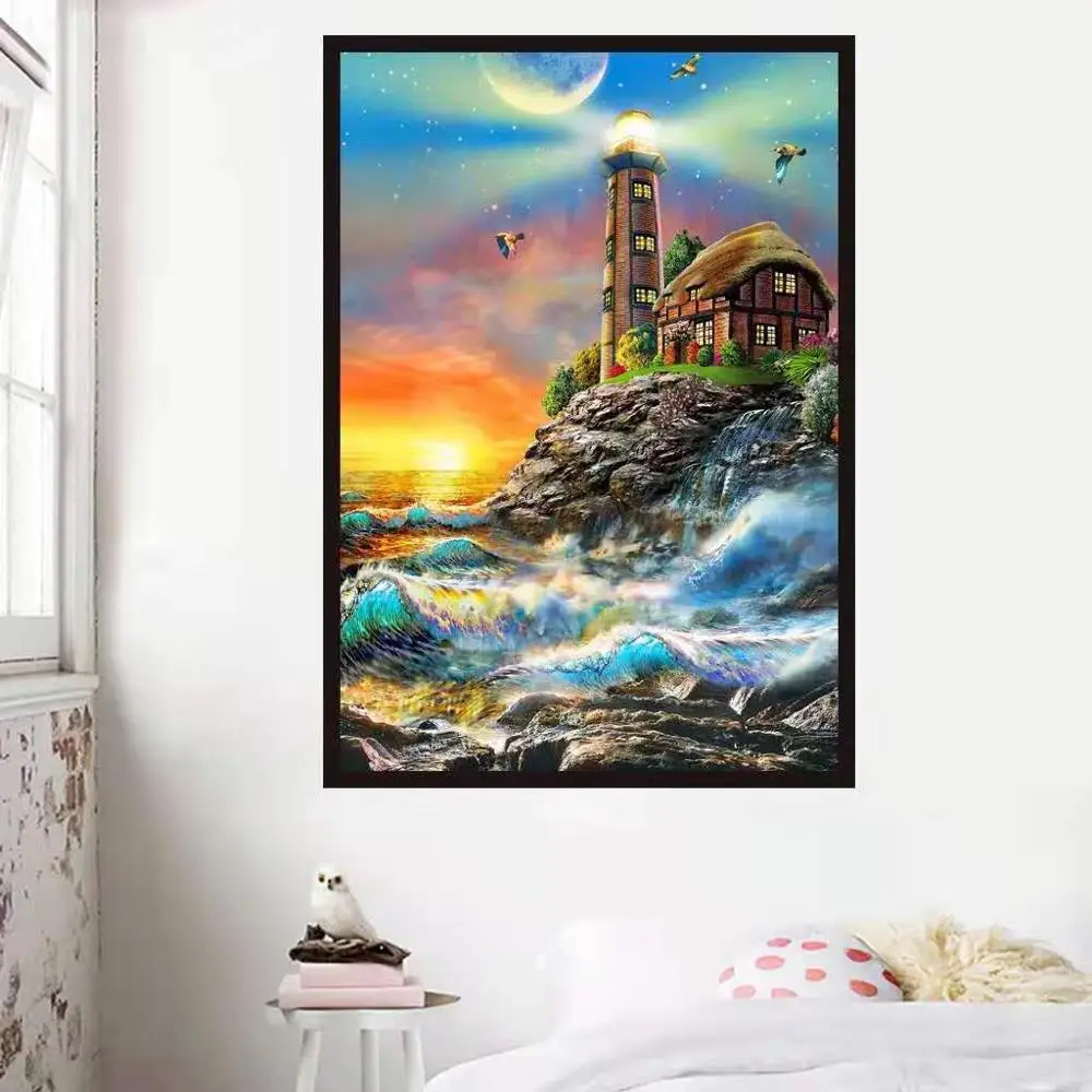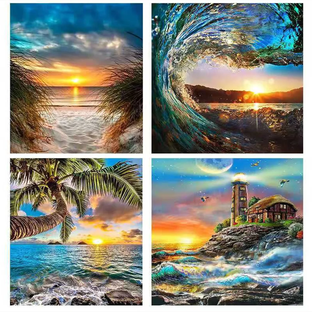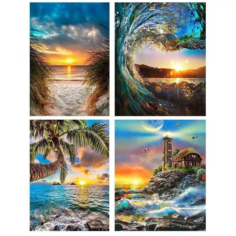 5D DIY алмазная живопись, 3D морской пейзаж, закат, пляжный крест, наборы, мозаика, вышивка, полная круглая дрель, украшение для дома, подарок