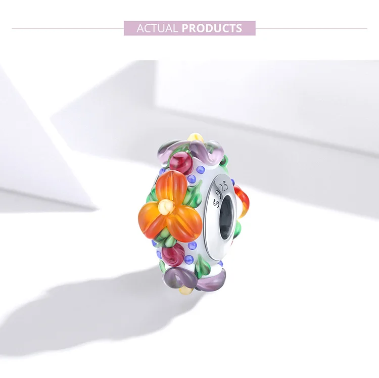 Оригинальная Подвеска для браслета и ожерелья с разноцветными цветами из стерлингового серебра 100% пробы, 925 пробы, подвески, стеклянные бусины, CQC1720